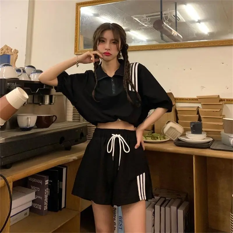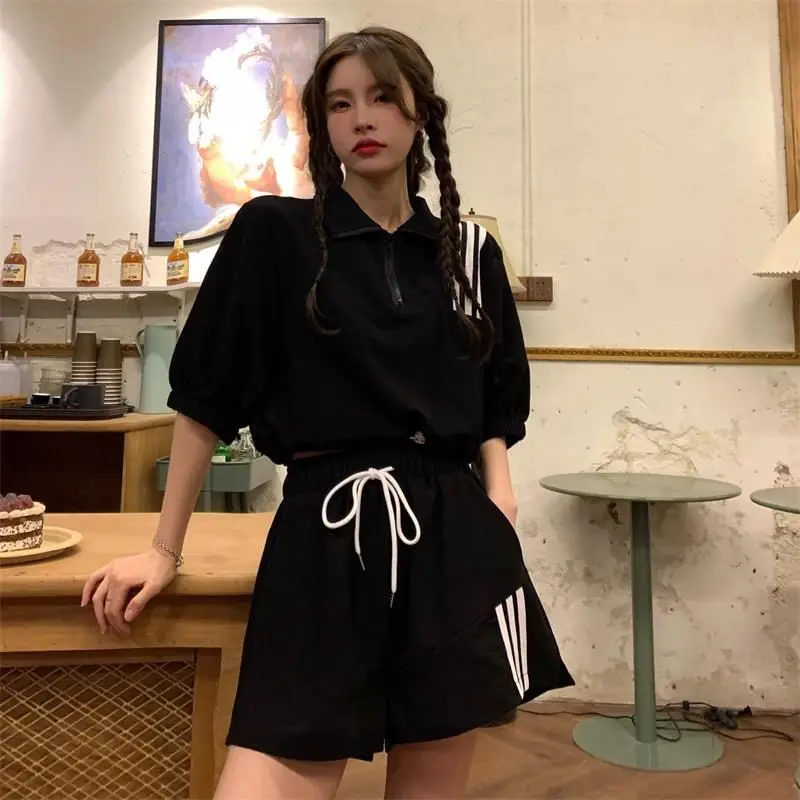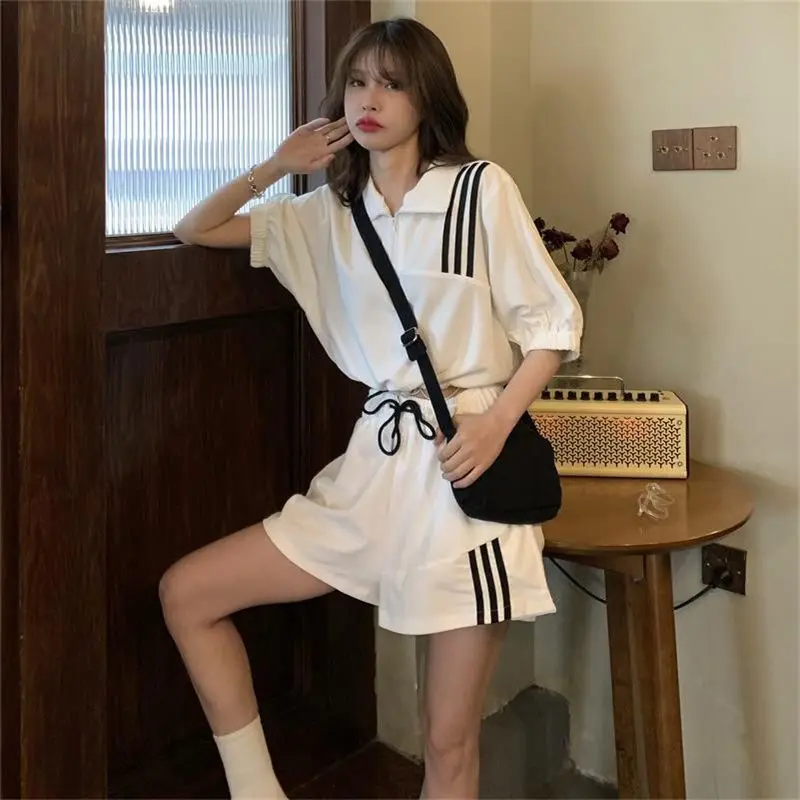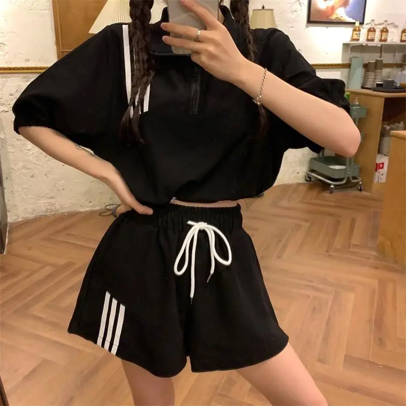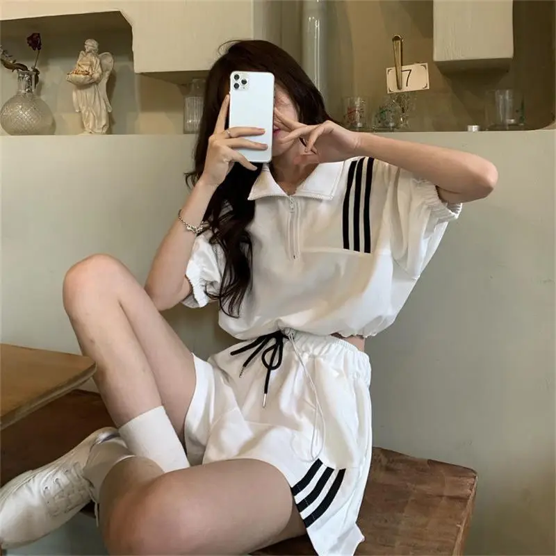 Lunivop Sporty Short Sets Women Summer New Striped Short-sleeved Tops + Casual Mini Shorts Two Piece Loose Casual Female Matching Set