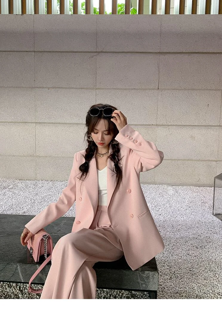 Lunivop Spring Winter Fashion Two Pieces Blazer and Pants Set for Women Pink Clothes Office Lady 2 Pieces Jacket Suit Streetwear Autumn