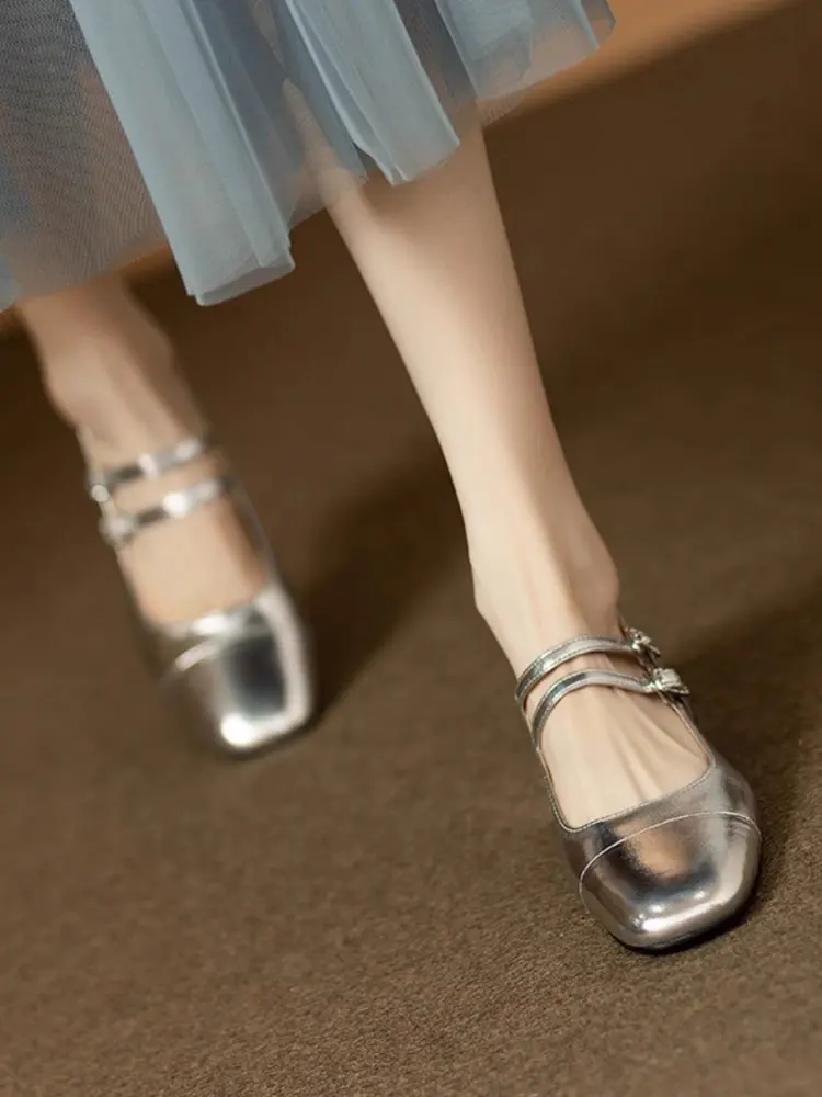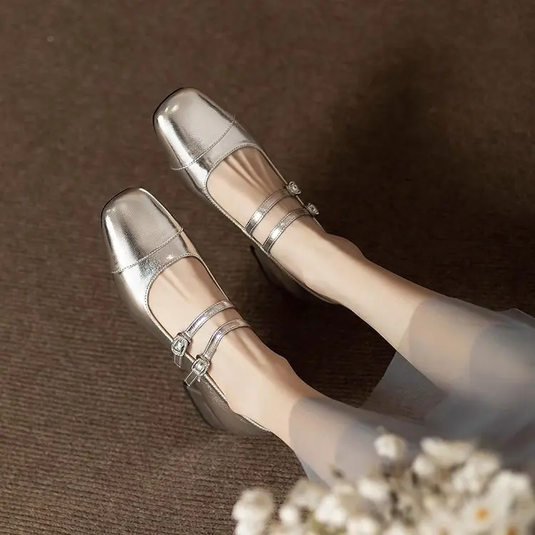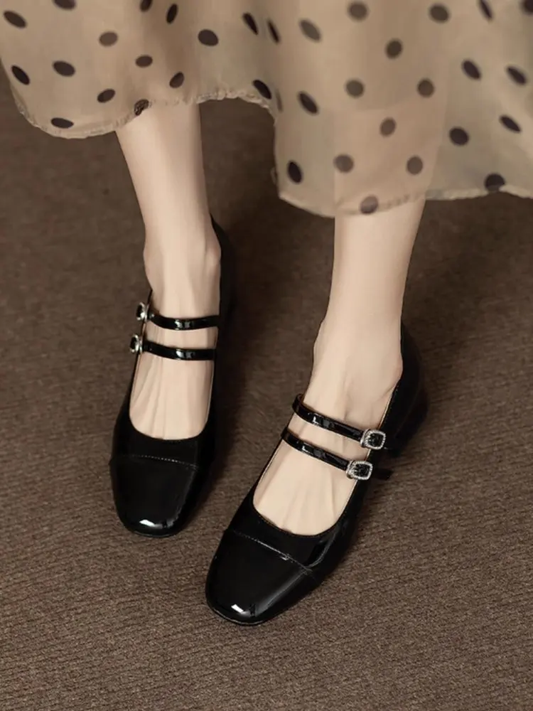 Lunivop Spring Women Double Buckle Mary Janes Shoes Patent Leather Dress Square Head Thick Heel Solid Color Pumps Women Shoes