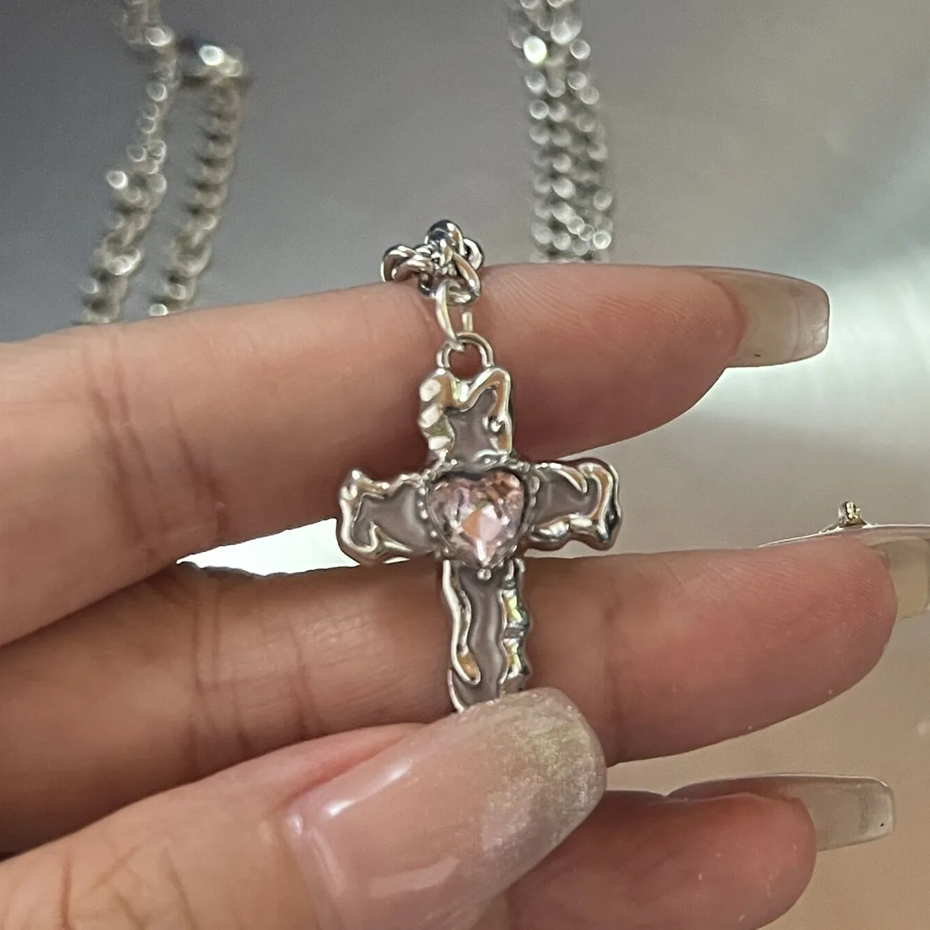 Lunivop Stainless Steel Chain Black Cross Necklace For Women Men Vintage Punk Simple Geometric Pendant Necklace Choker Jewelry