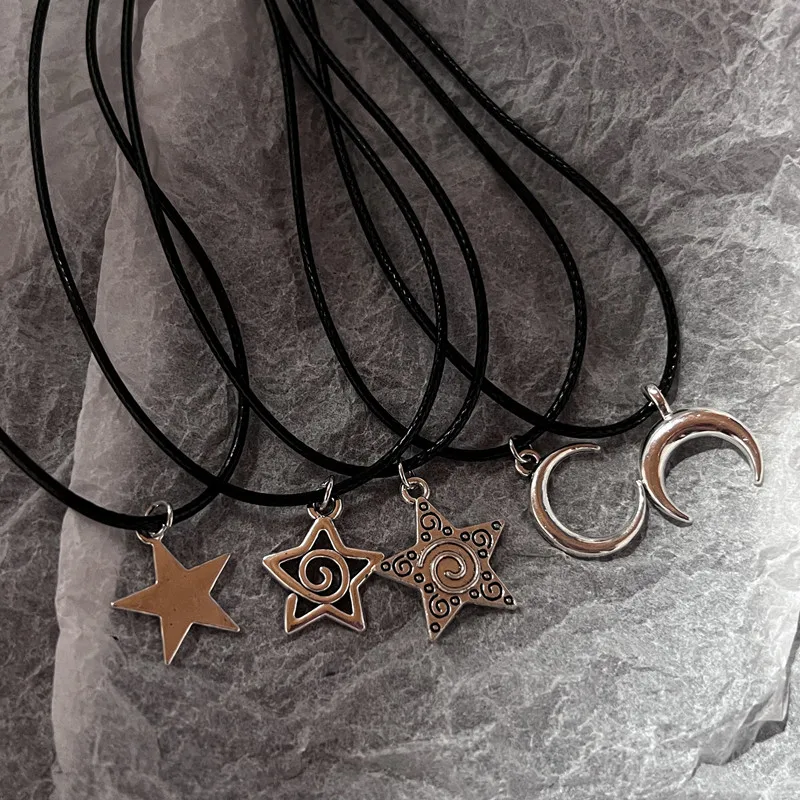 Lunivop Star Earrings Silver Color swirly Star 90s Chokers Celestial Best Friends Celestial Gift for Friend Necklaces Pendant Men Women