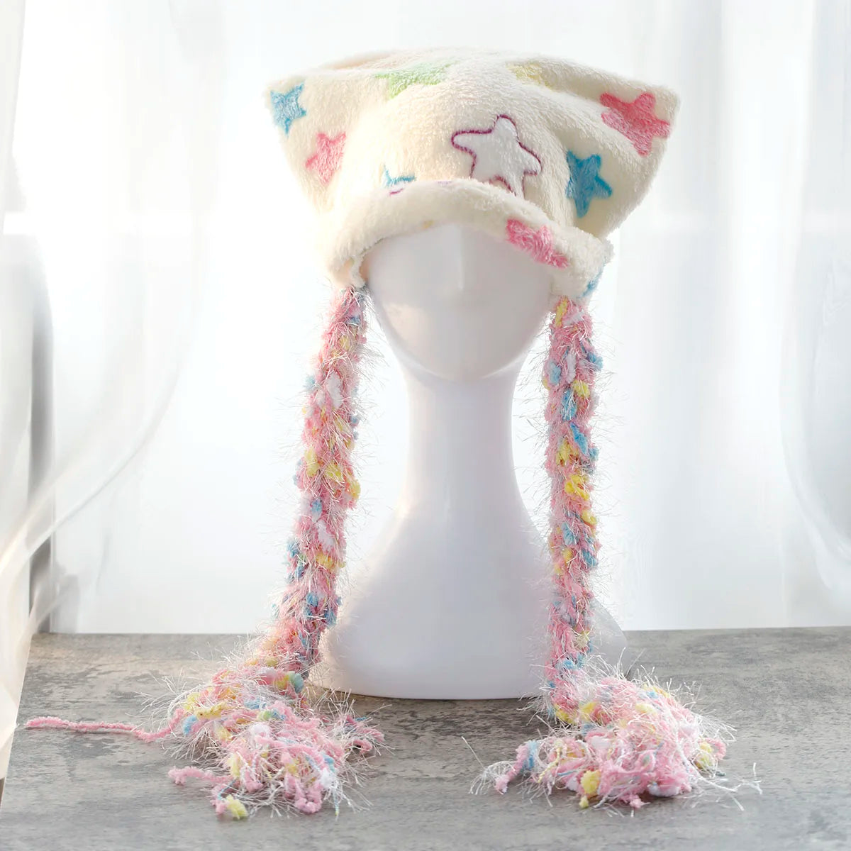 Lunivop star Scarf hat set Big caps Candy colored wool hat faux fur ear hat skiing cap Big hat Korean hat y2k warm hat Thick gentle hat