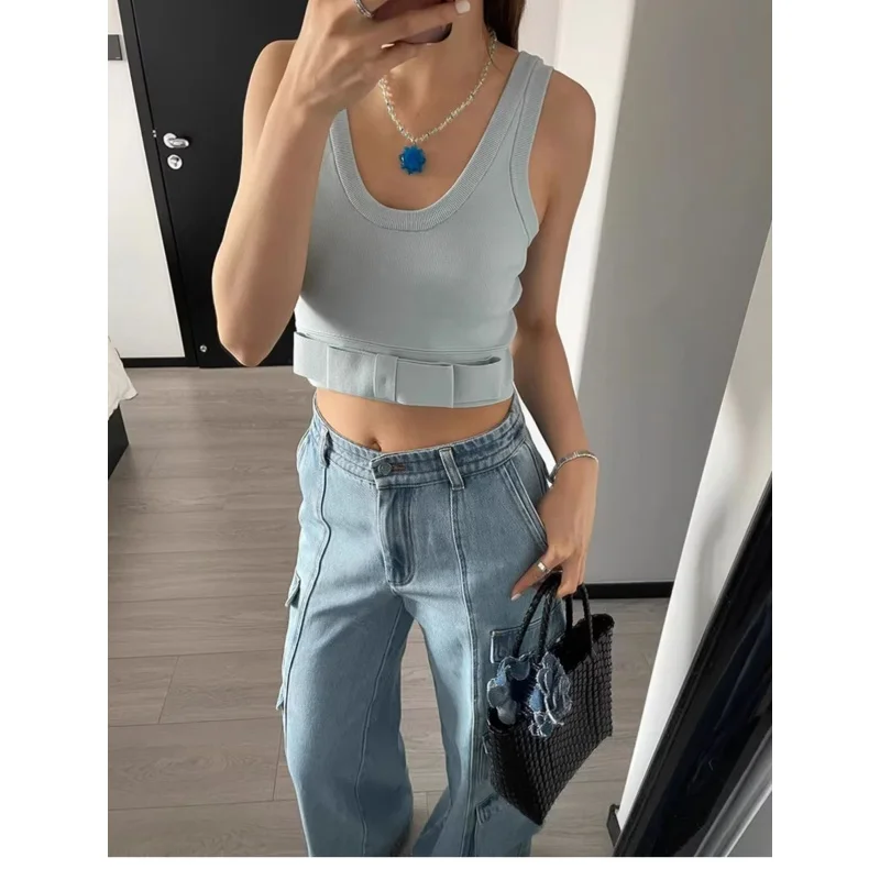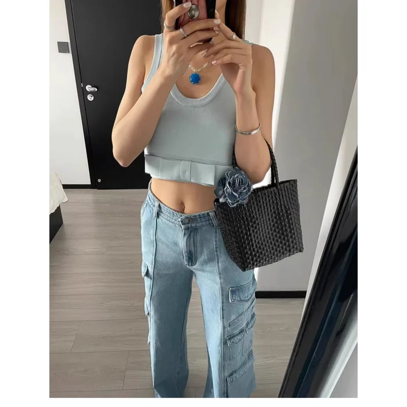 Lunivop Street Vintage Jeans New Y2K Harajuku Wash Blue Multiple pockets Baggy Jeans Denim Pants Womens High Waist Wide Trousers