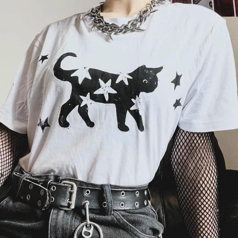 Lunivop Streetwear T-Shirt Vintage Women Punk Fairy Print Aesthetic Cute Grunge Y2K Clothes Goth Emo Girl Crop Top Loose fitting T-shirt