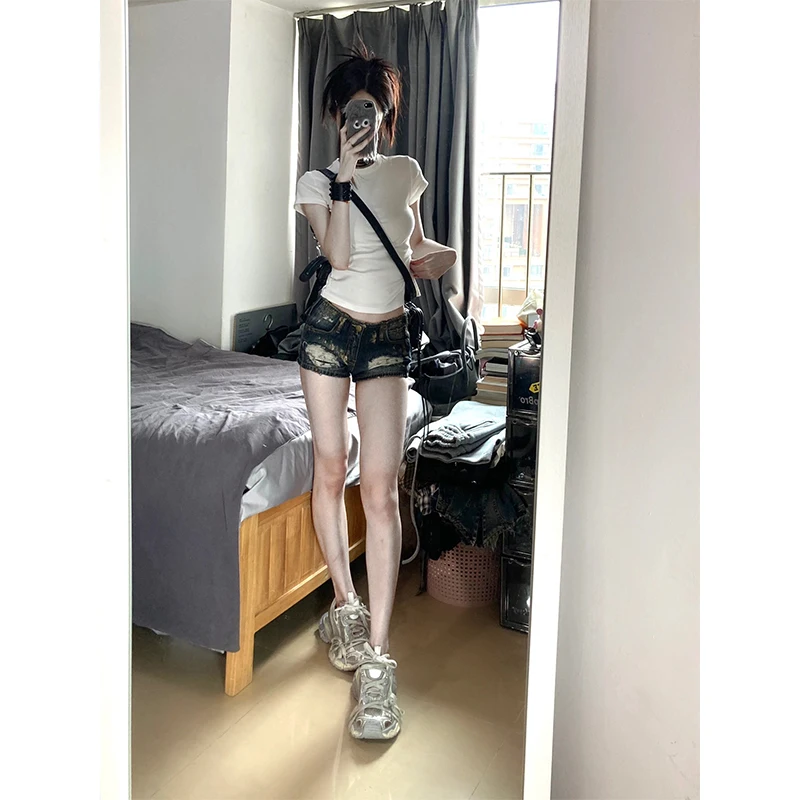 Lunivop Streetwear Tide Blue Hot Pants Hiphop Gyaru Cotton Denim Shorts Ripped Hole High Street Jean Shorts 2000s Aesthetic