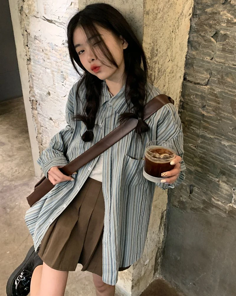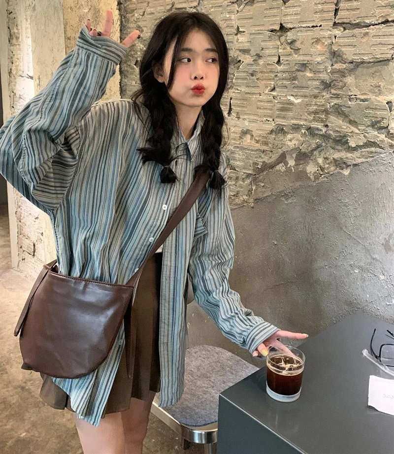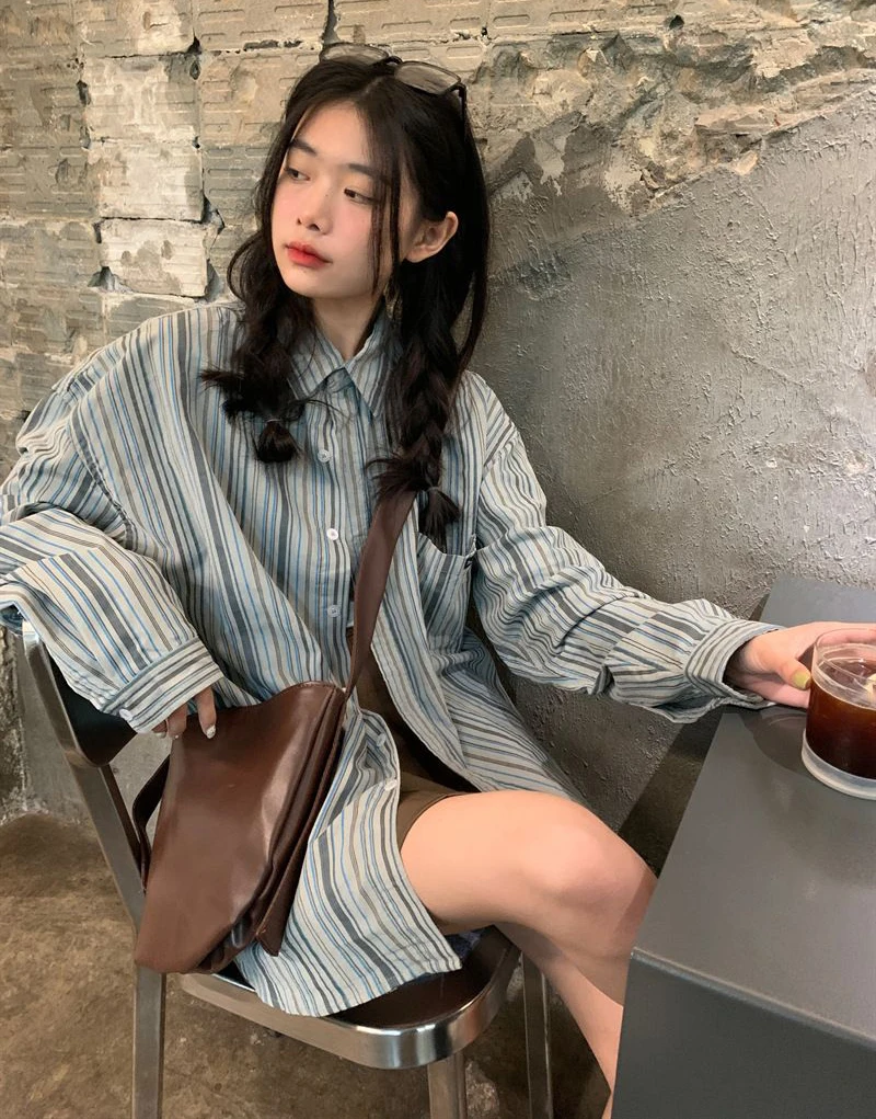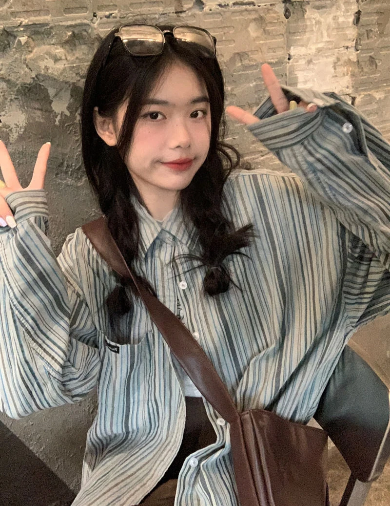 Lunivop Striped Loose Retro Shirts Women Casual Preppy Style Long Sleeve Blouse Vintage Female Pockets All Match Spring Korean Tops