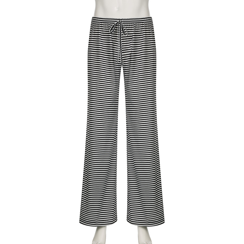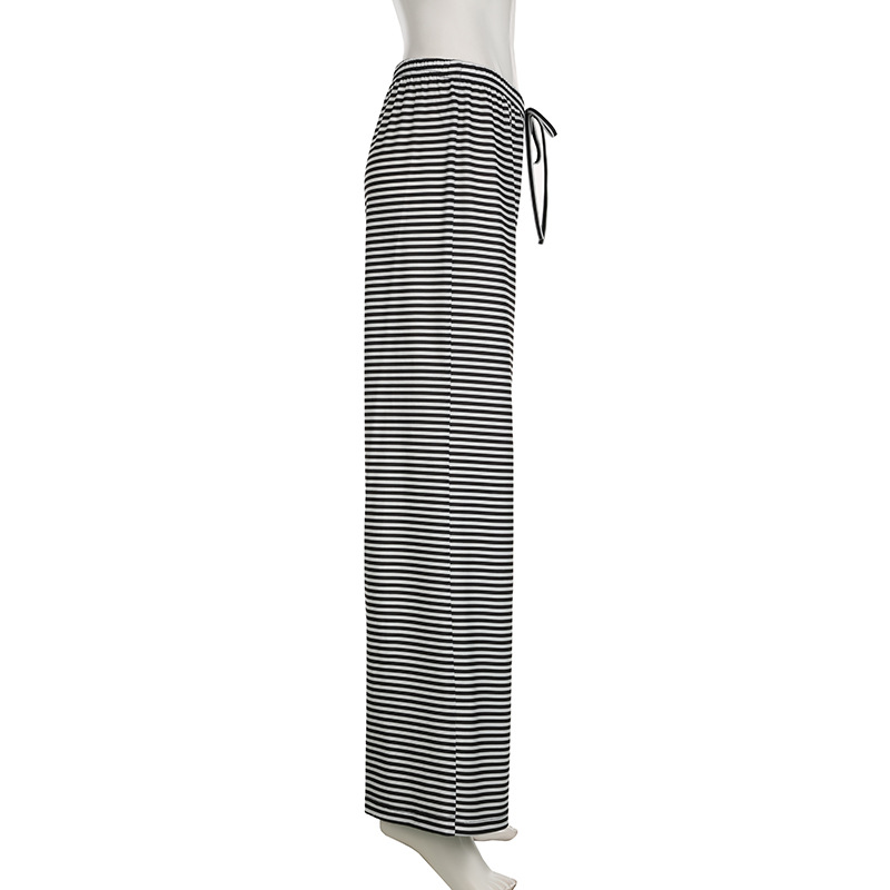Lunivop Striped Print Drawstring Low-rise Y2k Baggy Pants Comfy Slacks Wide Leg Trousers Women Casual Clothes