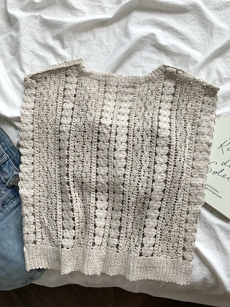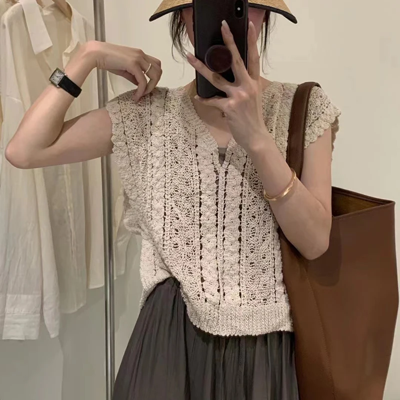 Lunivop Summer Crochet Top Women Sheer Openwork V-neck Sleeveless Knit Tank Blouse Beach Boho Vacation Outfit
