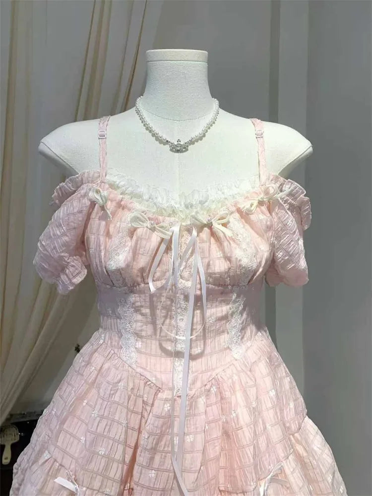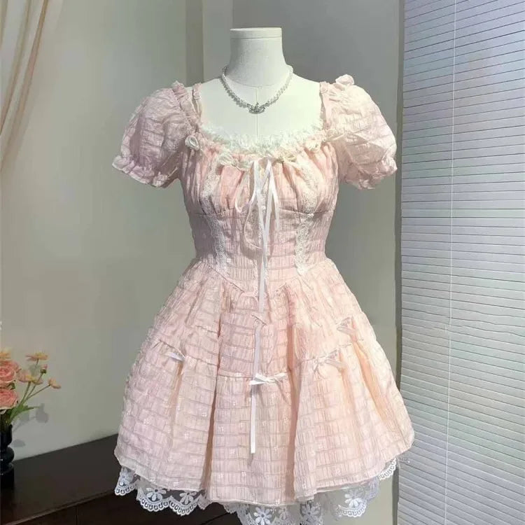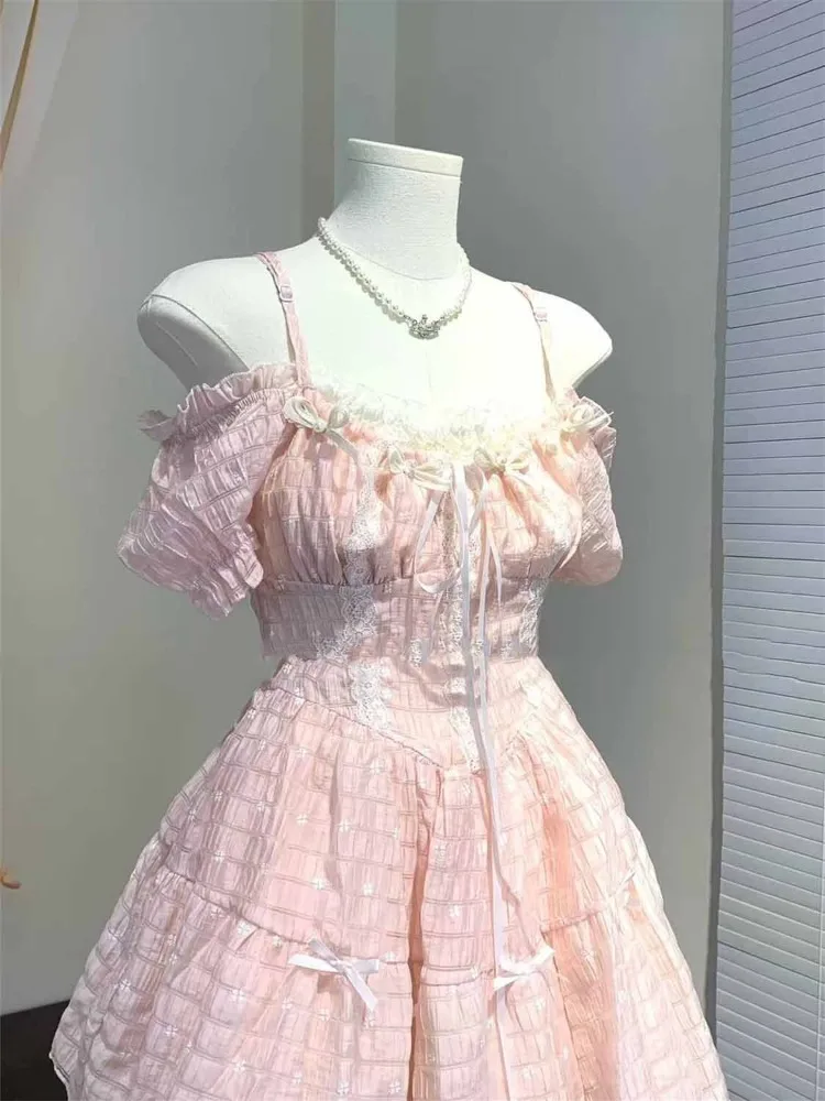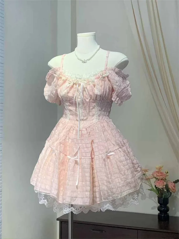 Lunivop Summer Elegant Sweet Bow Camisole Dresses New Slim Waist Dres for Women Y2k Grunge Puff Sleeve Vestido Feminino
