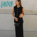 Lunivop Summer Fashion Knitted Skirt Suit Sleeveless Vest Pocket Slit High Waist Long Skirt Elegant White Ribbed Knitwear Outfits