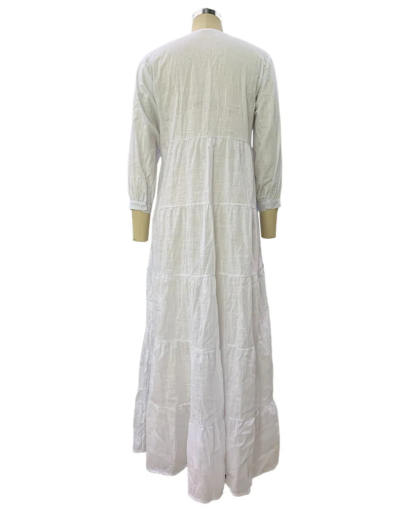 Lunivop Summer Loose Long Sleeve Dress Casual Single Breasted Holiday Dresses Women's V Neck Pattern Printed Bohemian Style