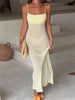 Lunivop Summer Mesh Slim Halter Dresses For Women See-Through Backless Square Collar Elegant Patchwork Dress Female Long Dress New