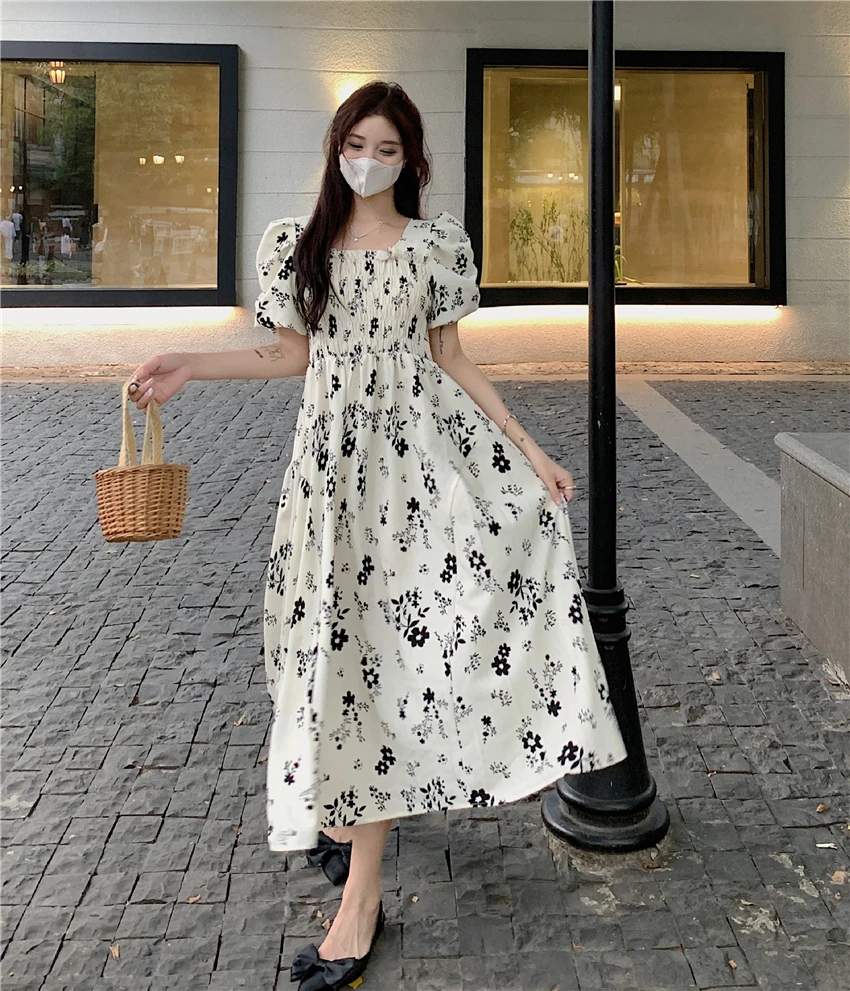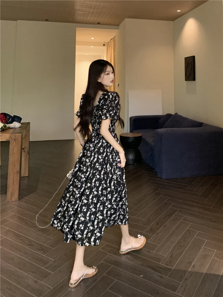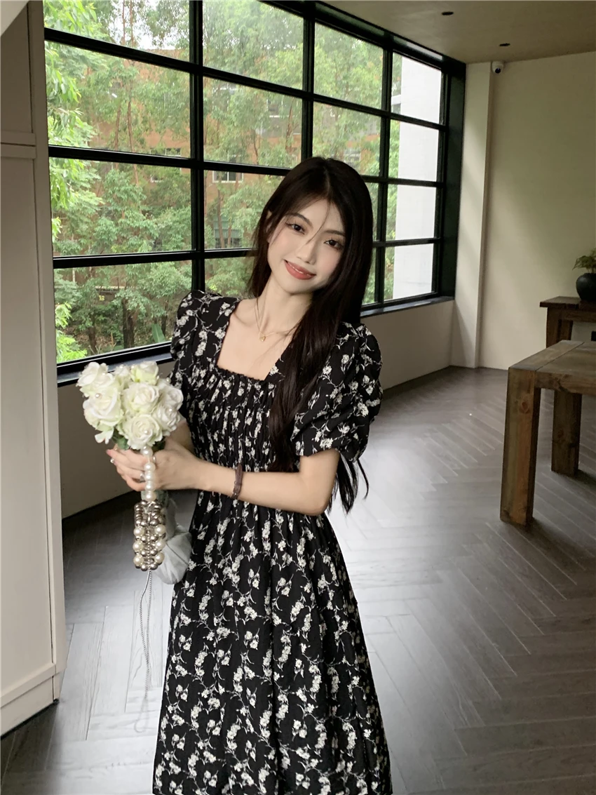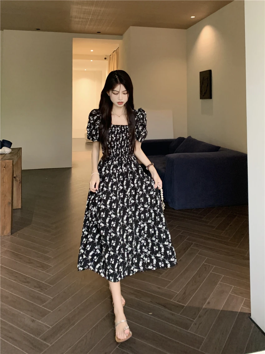 Lunivop Summer Pleated Women Chiffon Dresses Casual Beach Holiday Short Sleeve Square Collar Woman Midi Dress Bohemian Mujer Vestidos