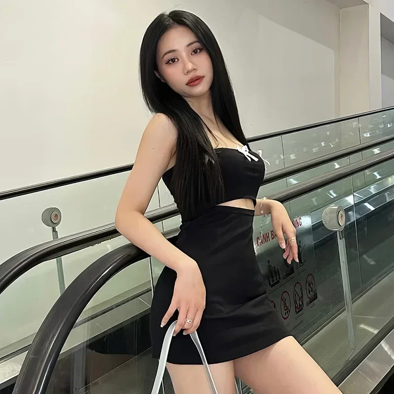 Lunivop Summer Women's Pure Desire Wind Sexy Hottie Bow Decoration Hollow Out Sheath Dress Women