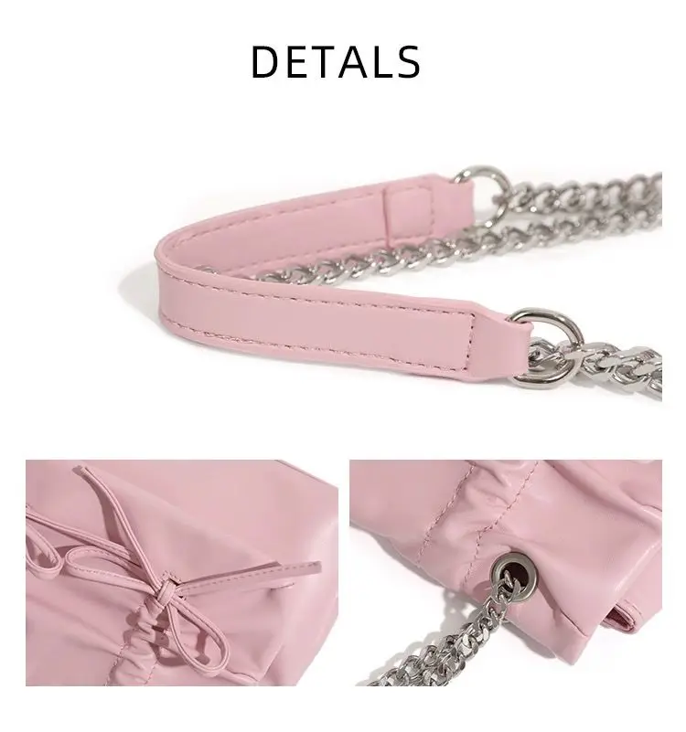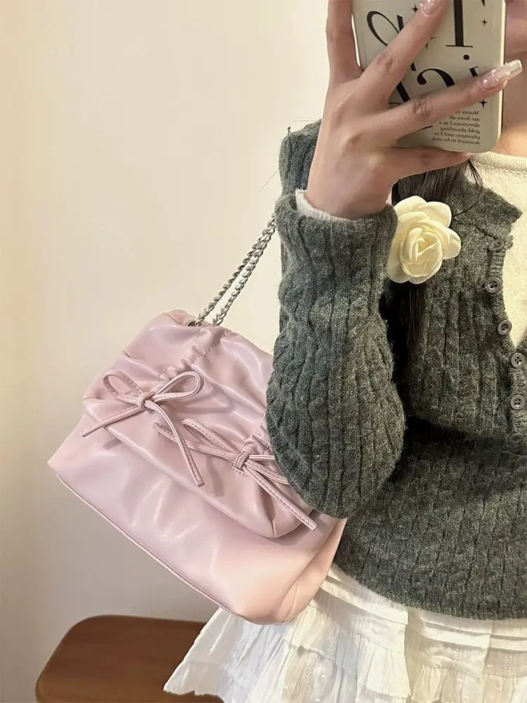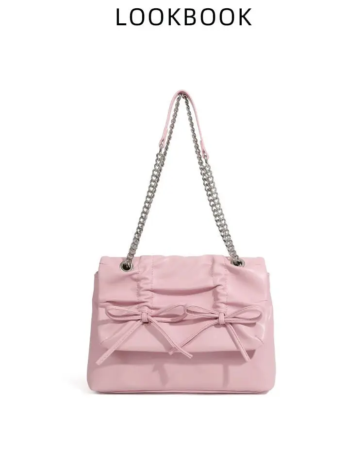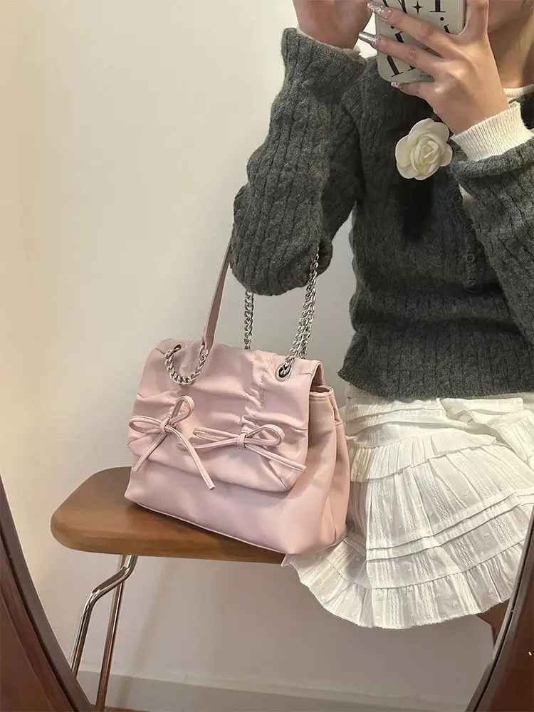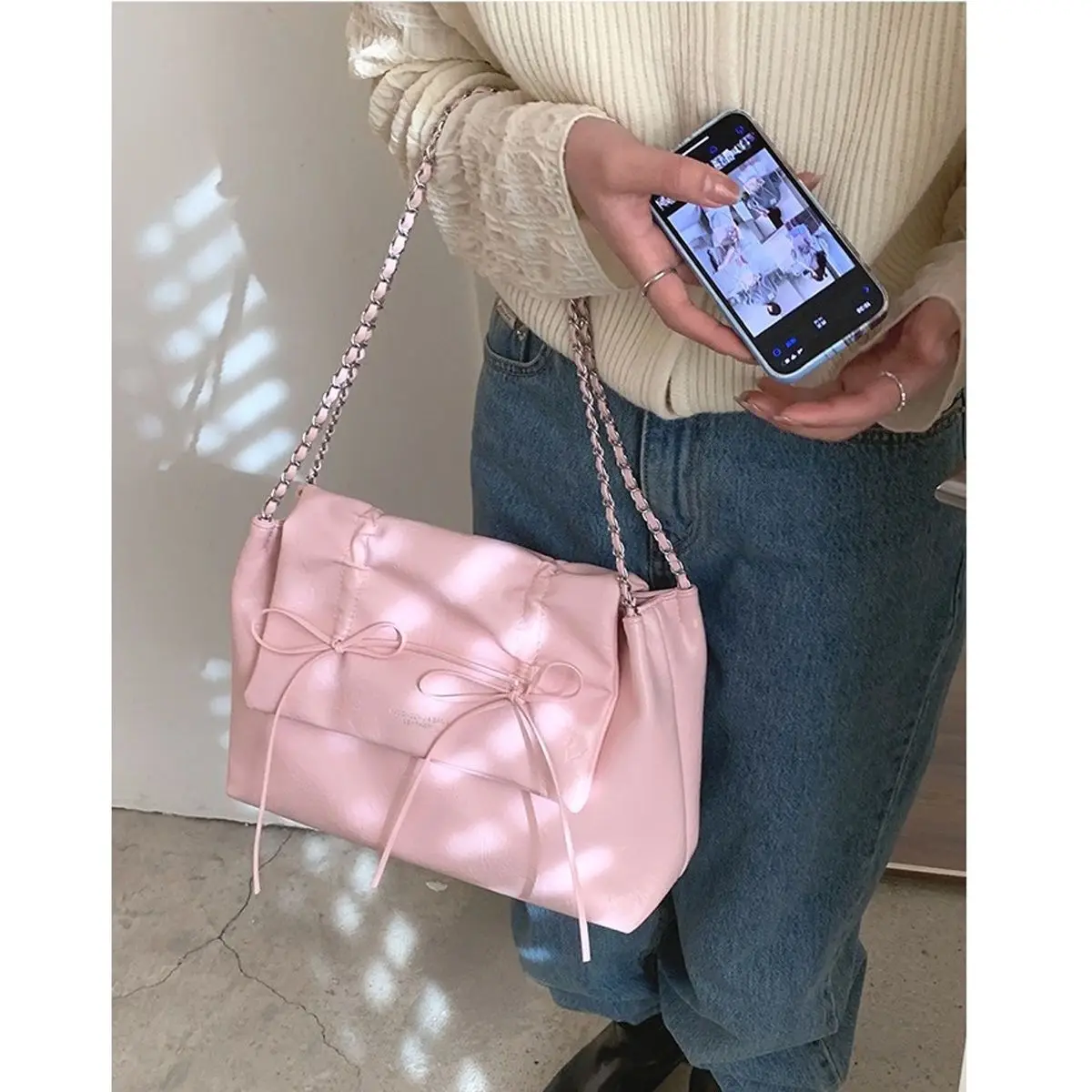 Lunivop Sweet Bow Pink Shoulder Bags Women Fairy Core Chain Chic Y2k Handbag Female Lolita Harajuku Messenger Bag Aesthetic