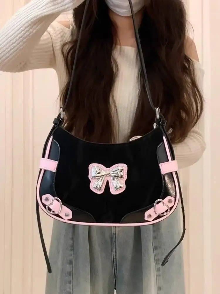 Lunivop Sweet Cool Black Y2k Shoulder Bags Purse Women Hot Girls Bow Chic Cute Handbag Female Fairycore Underarm Bag Aesthetic