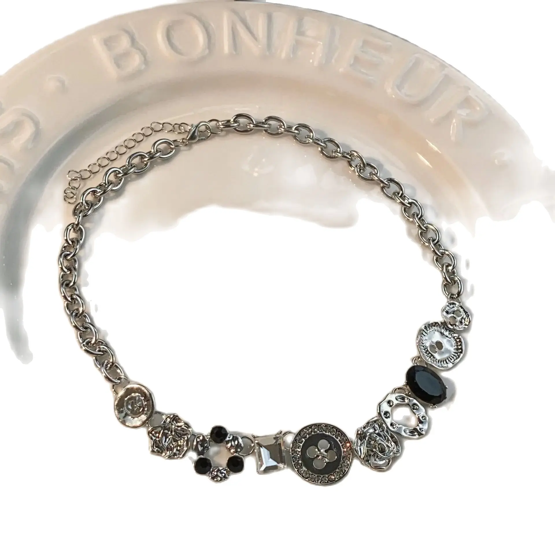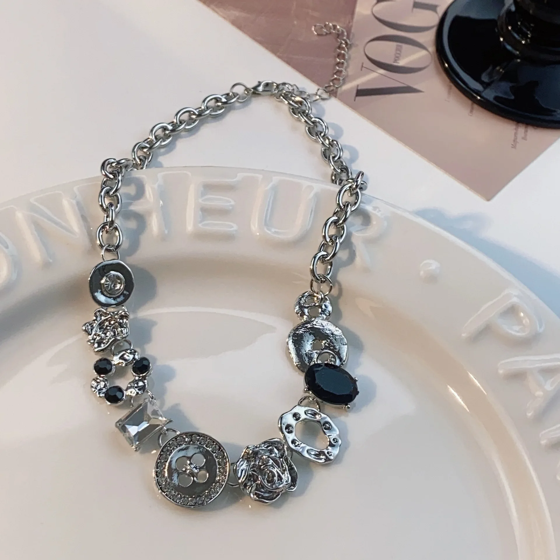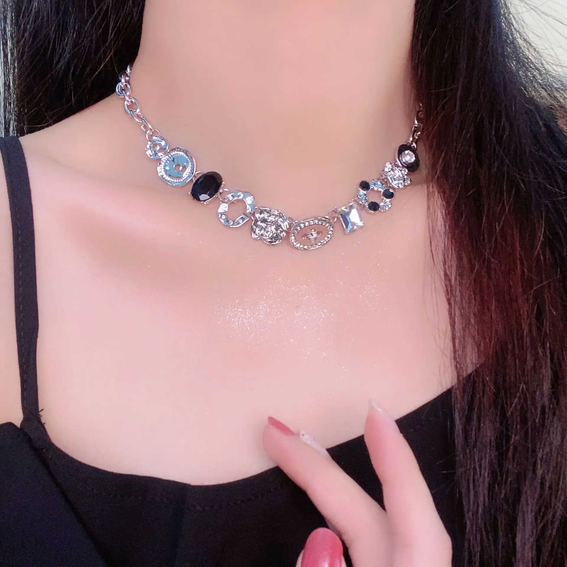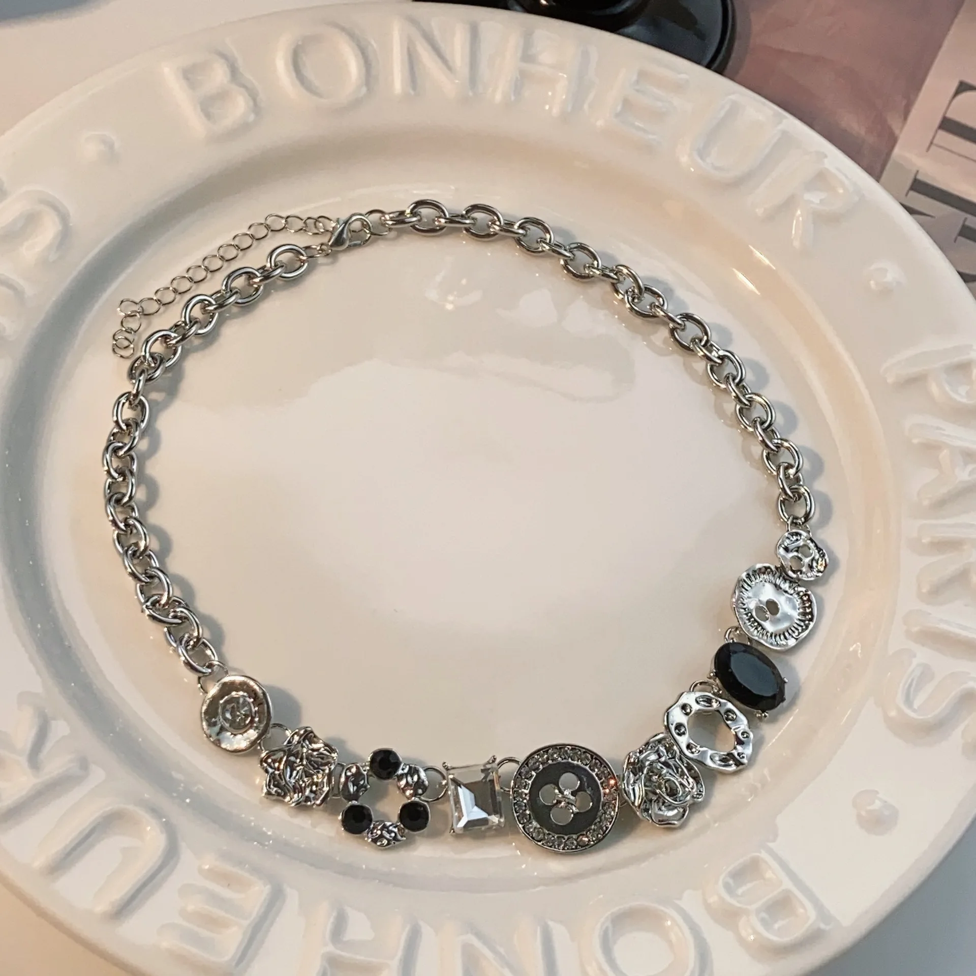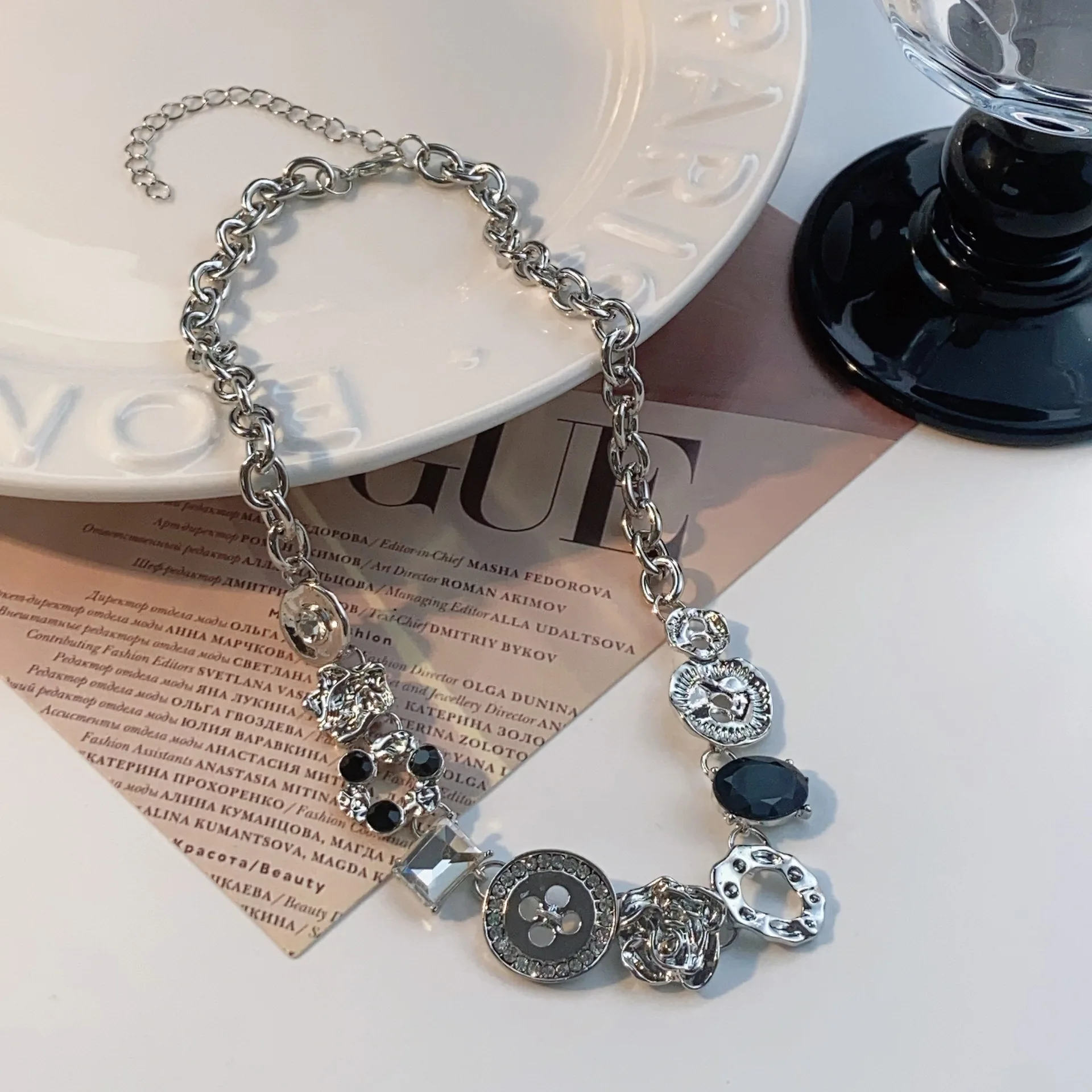 Lunivop Sweet Cool Metal Button Necklace Vintage Steampunk Y2K Clavicle Chains Choker Neck Gothic Grunge Women Men Jewelry Accessories