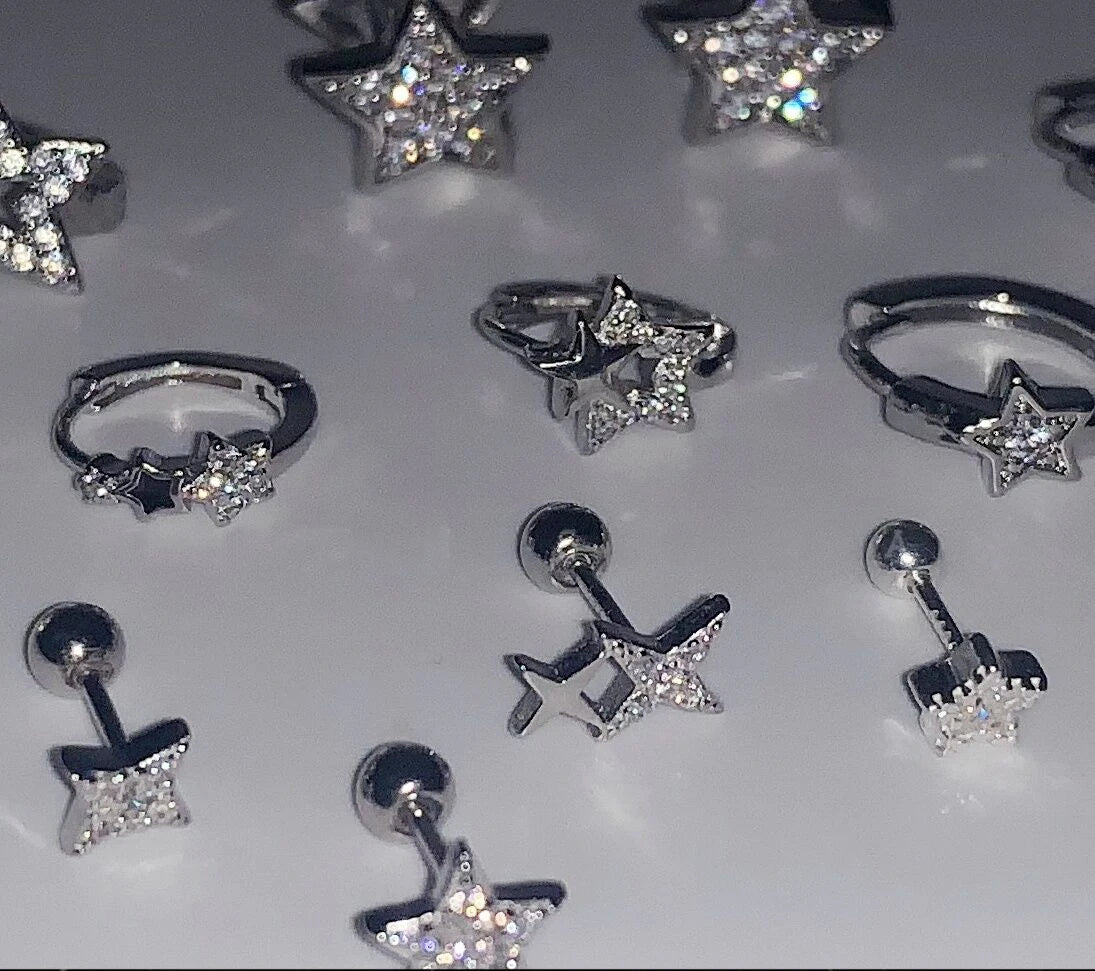 Lunivop Sweet Cool Star Zirconia Screw Back Stud Earrings for Women Girls Hiphop Stainless Steel Cartilage Helix Ear Piercing Earrings