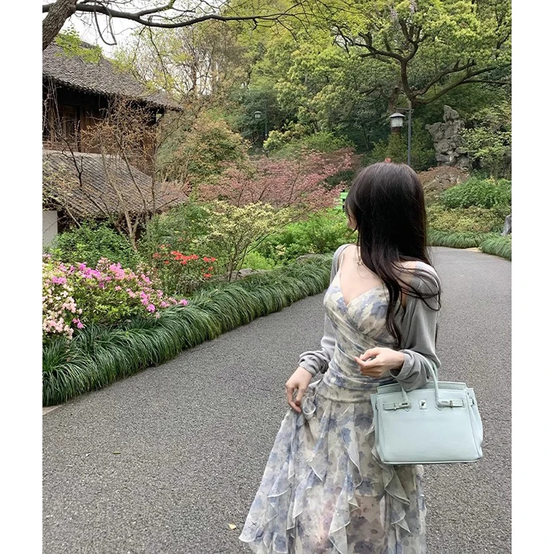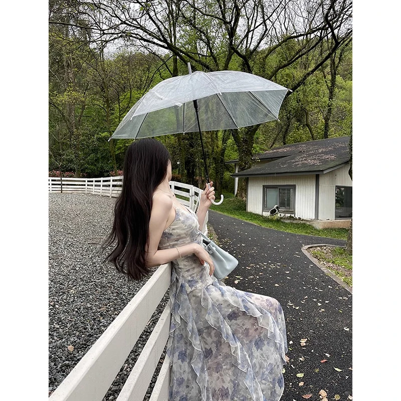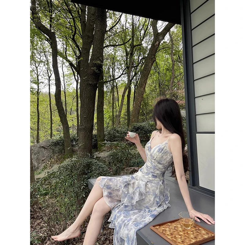 Lunivop Sweet Elegant Floral Strap Dress Women Summer Ruffles Designer Korean Party Dress Female Vintage Sleeveless Dresses