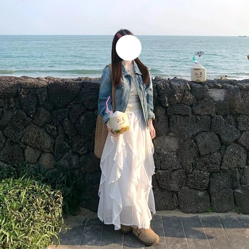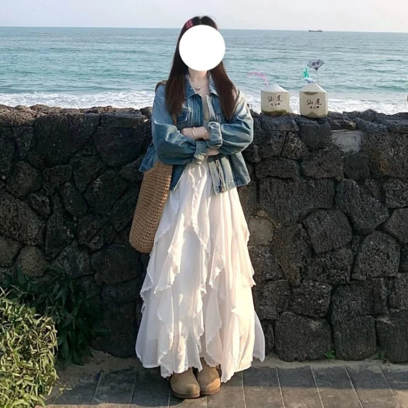 Lunivop Sweet Elegant White Long Skirt Women Fairycore Korean Style Lace Ruffle Skirt Asymmetrical Retro Street Layered Skirts