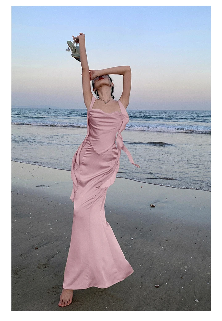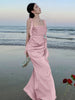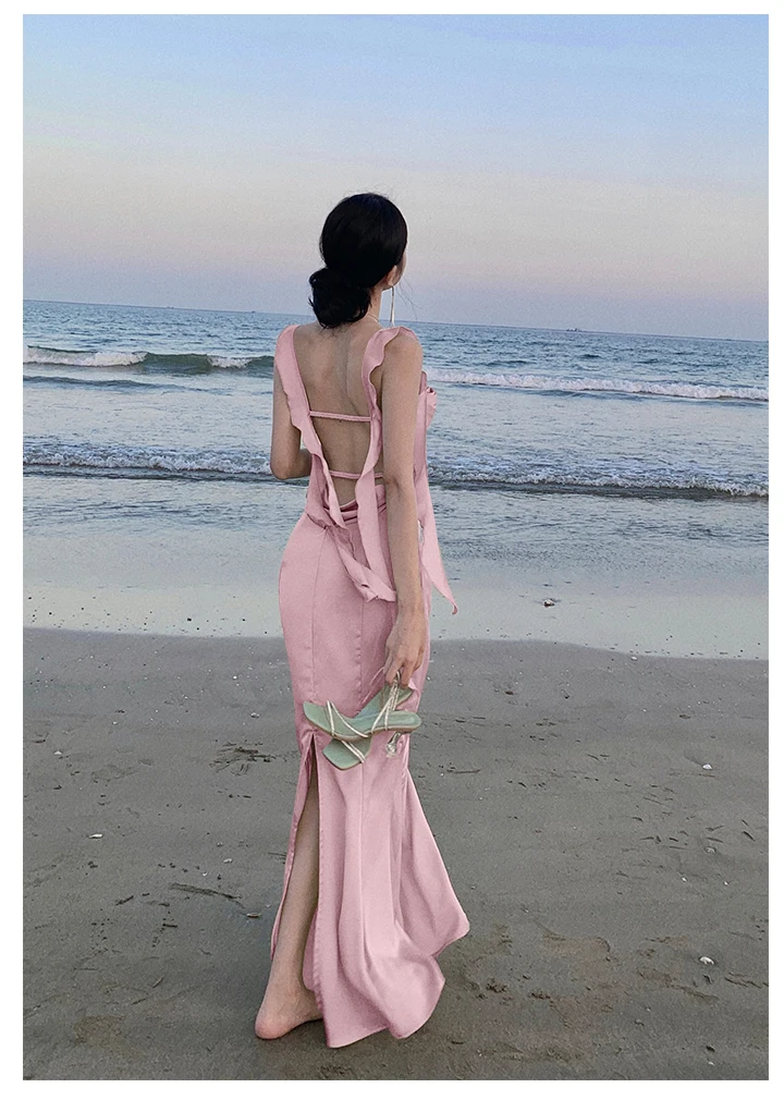 Sweet Pink Backless Womens Dresses Sexy Spaghetti Strap Sleeveless Wedding Evening Dress Elegant Gown Female Split Vestidos New