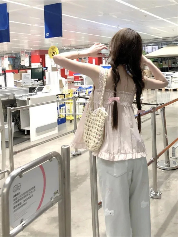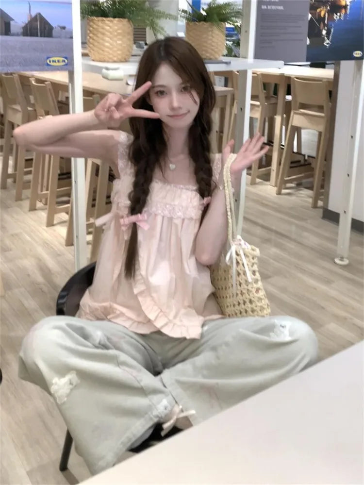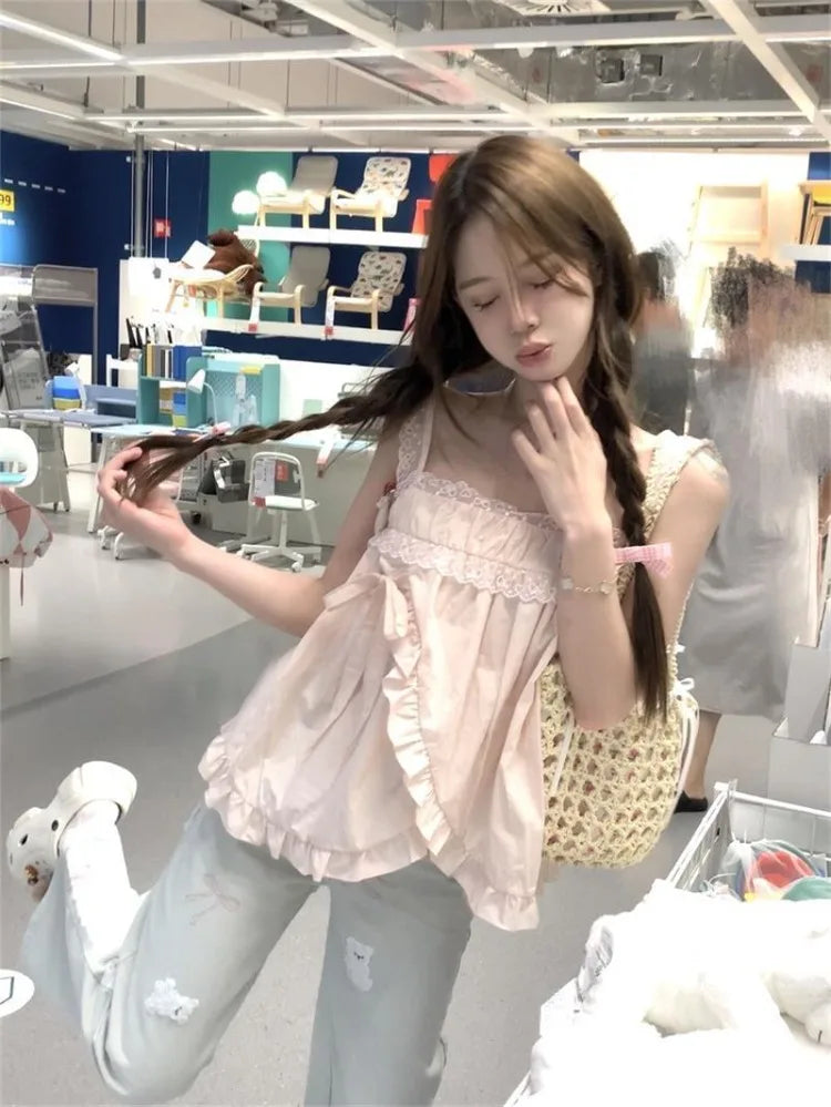 Lunivop Sweet Pink Lace Patchwork Camisole Vest Y2k Loose Sleeveless Top for Women 2025 Summer New All-match Casual Tank Top