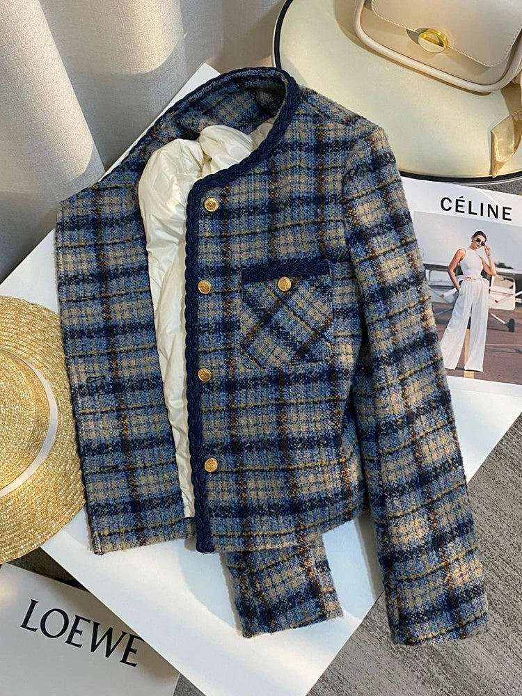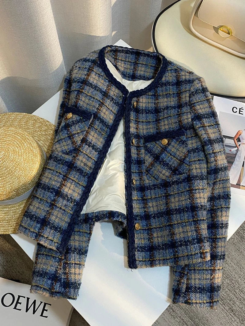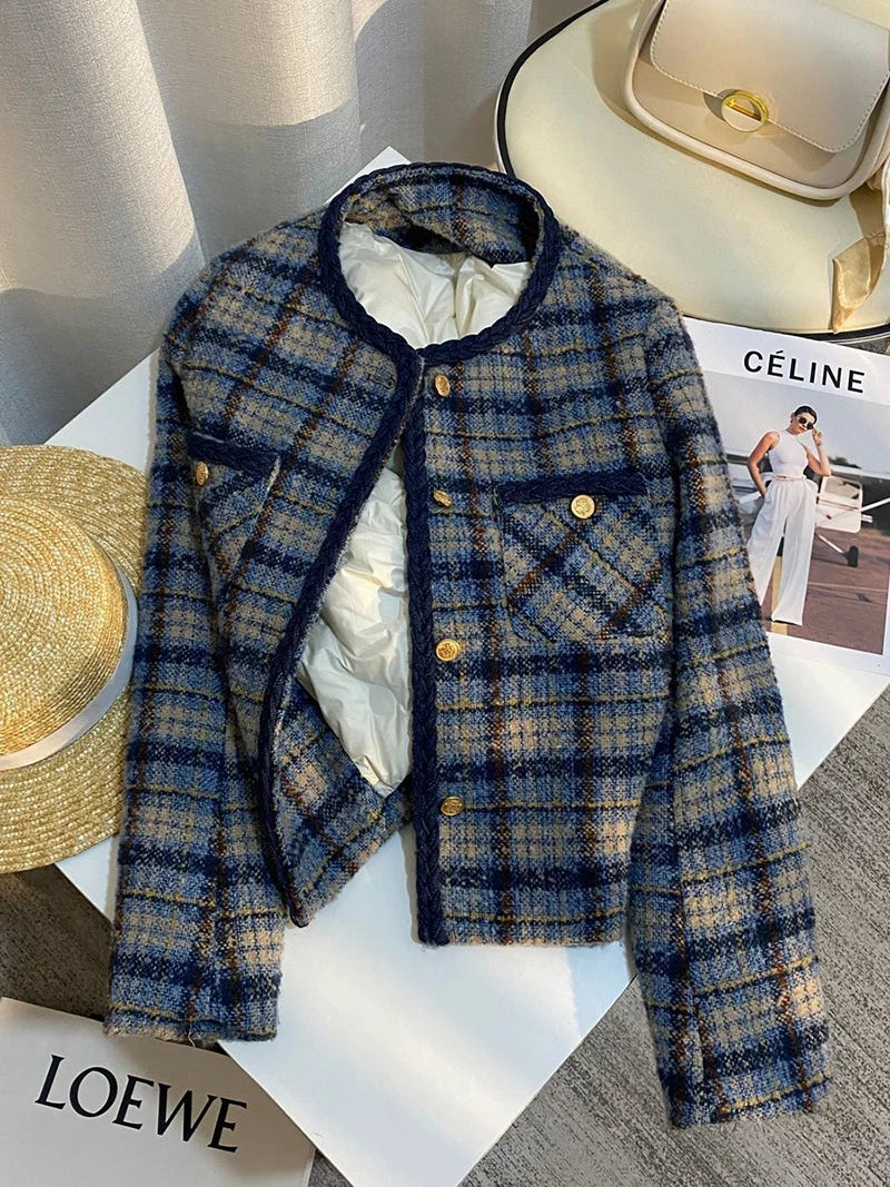 Lunivop Thick Warm Elegant Tweed Jacket Women Slim Vintage Long Sleeve Winter Coat Korean Casual O Neck Female Retro Sweet Tops New