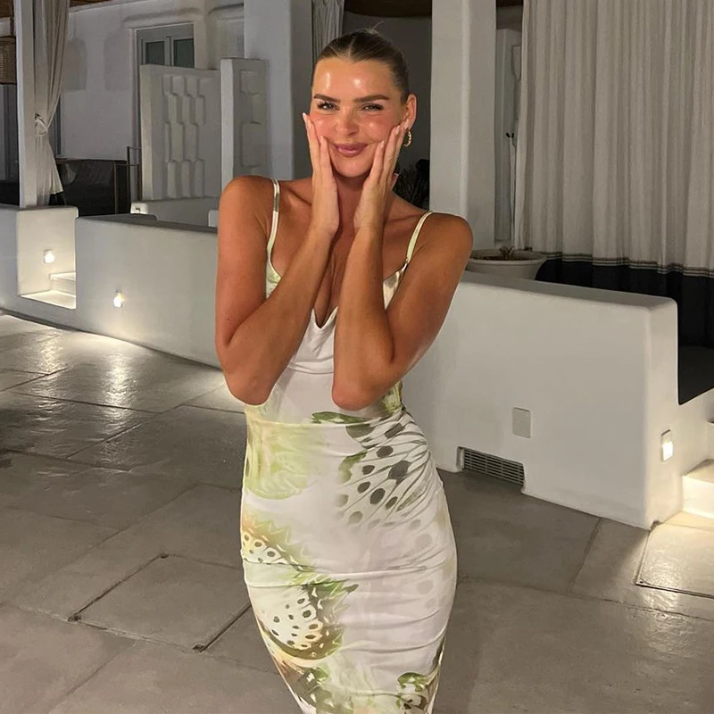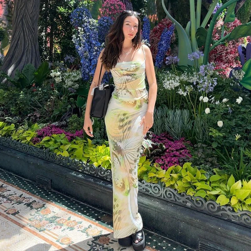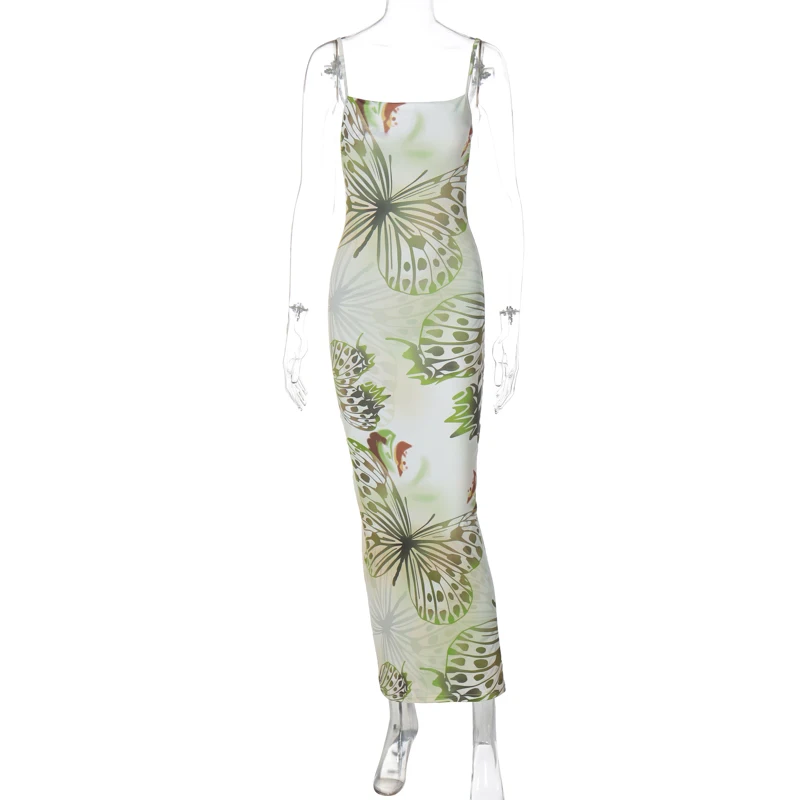 Lunivop Tie Dye Butterfly Print Sleeveless Ruched Midi Slim Women Dress Elegant Party Ladies Autumn New Clothing