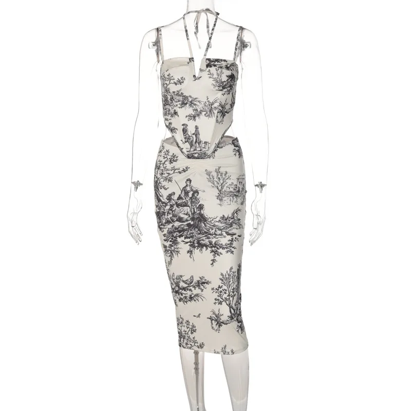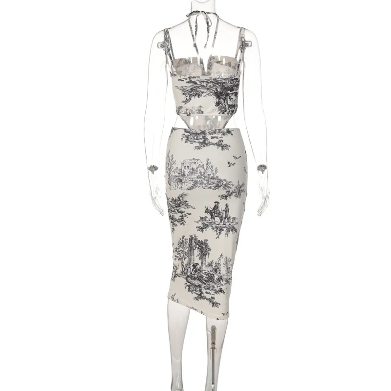 Lunivop Tie Dye Floral Print Halter High Waist Corset Crop Top Tube Skirts Women'S Sets Summer Evening Casual Party Club Clothes