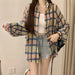 Lunivop Tops Women Sheer Chiffon Plaid Shirt Long Sleeve Button Up Collared Oversize Checked Shirts and Blouse Summer Casual Outfit