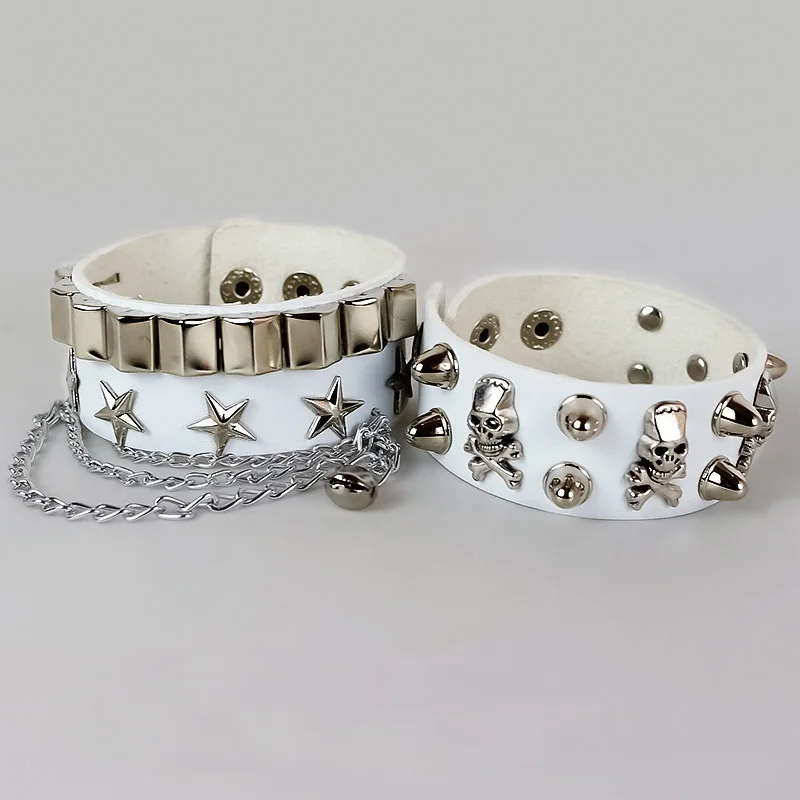 Lunivop Trend Punk Exquisite Chain Alloy Star Rivet Skull Bracelet for Women Multicolored PU Leather Bracelet Cool Hiphop Jewelry Gifts