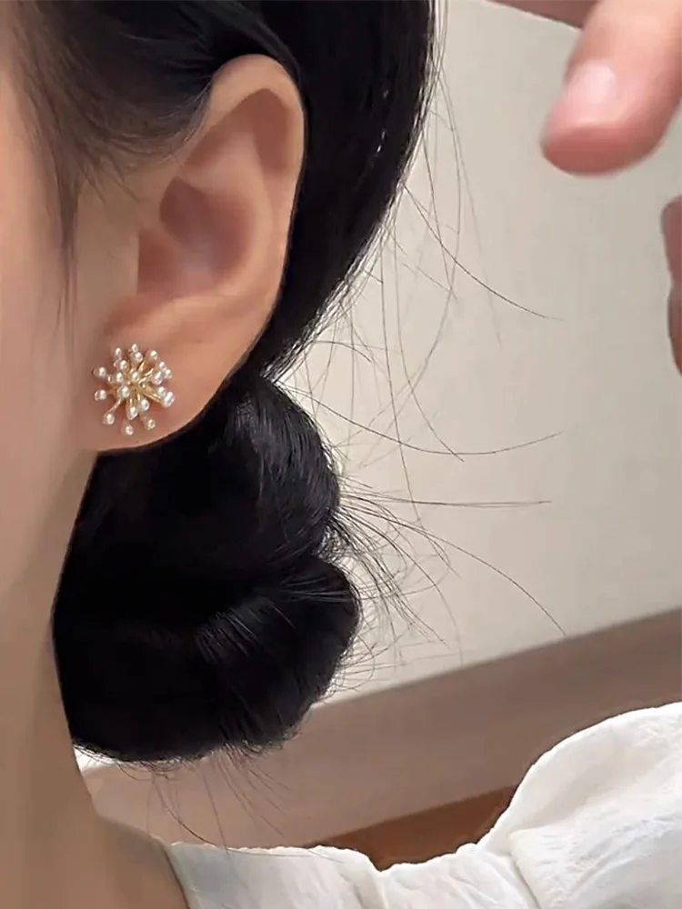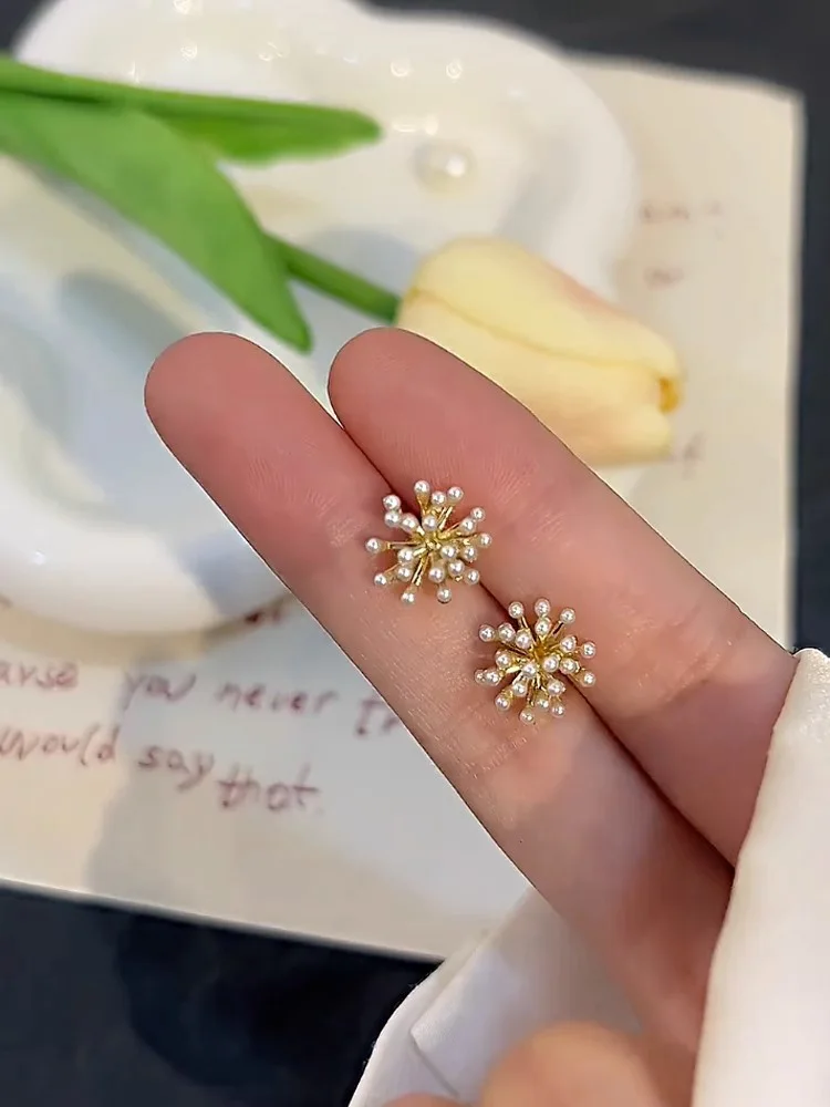 Lunivop Trendy Cute Pearl Flower Earrings for Women Exquisite Silver Needle Studs Sweet Elegant Party Jewelry Wedding Gifts