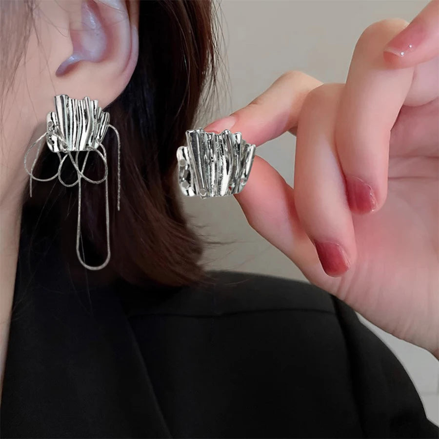 Lunivop Trendy Hiphop Asymmetric Corrugated Pleated Earrings for Women Niche Design Personality Party Jewelry Girlfriend Gifts