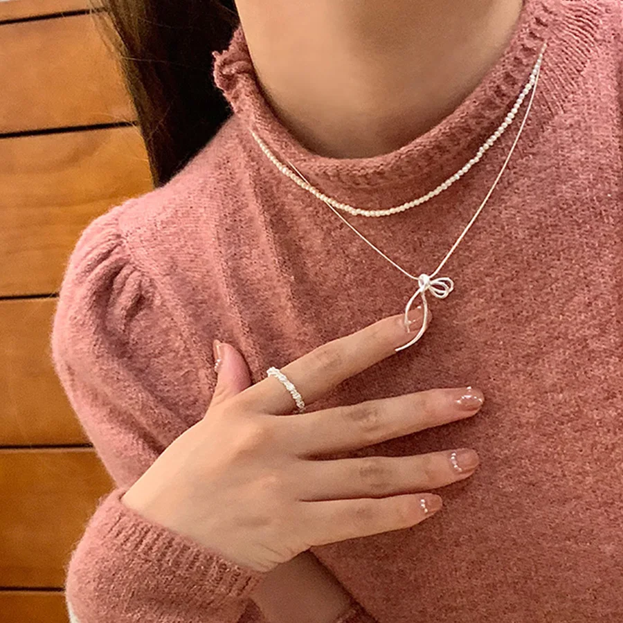 Lunivop Trendy Simple Golden Silver Plated Bow Pendant Necklace for Women Glossy Copper Chain Sweet Elegant Party Jewelry Wedding Gifts
