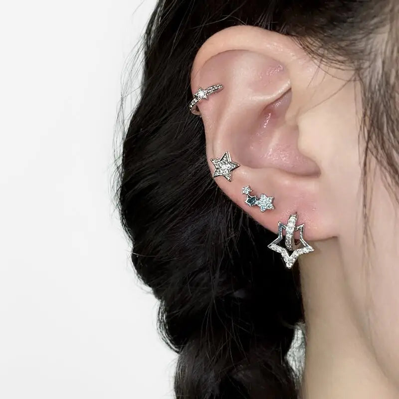 Lunivop Trendy Star Zirconia Stud Earrings for Women Girls Hiphop Punk Cool Star Hoop Earrings Party Jewelry Gift