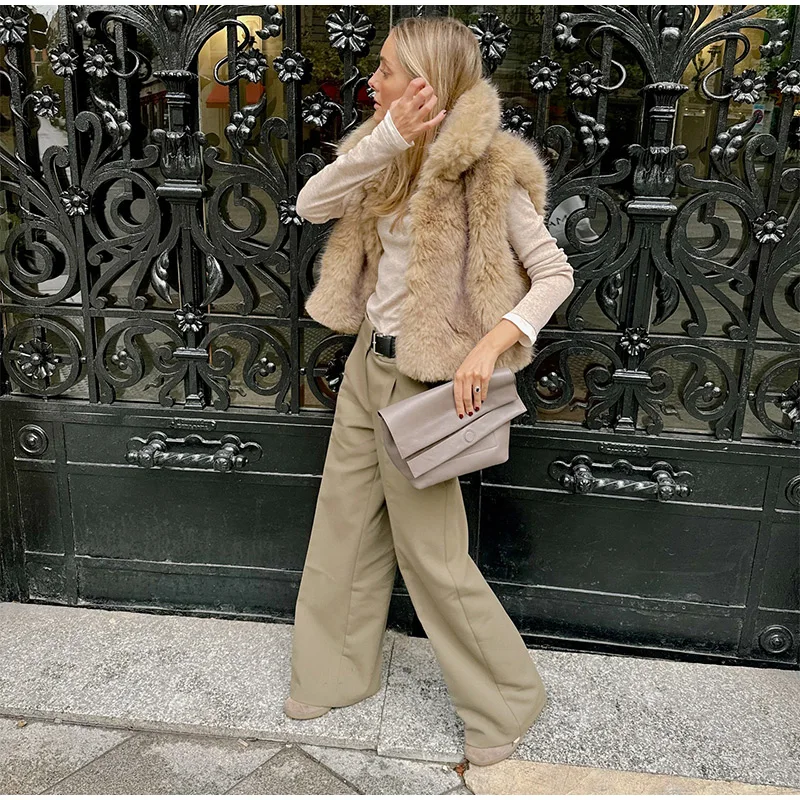 Lunivop Turn-down Collar Fluffy Faux Fur Vest Women Luxury Solid Sleeveless Waistcoat Female Autumn Winter High Street Outwear Tops