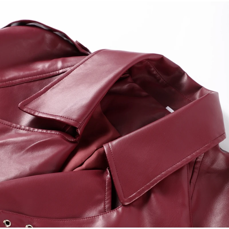 Lunivop Turn-down Collar Leather Moto-biker Jackets Women Casual Chic Long Sleeved Jacket Female Fashionable Cool Loose Fit Outwear Tops