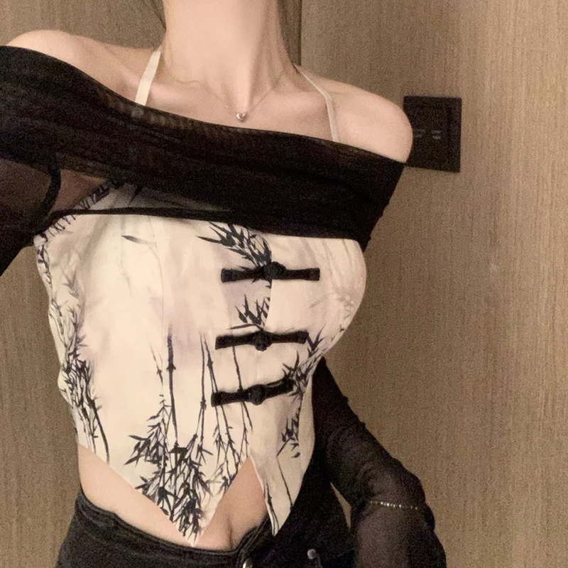 Lunivop Two Pieces Set Long Sleeve T-shirts Y2K Aesthetic All Match Halter Irregular Sleeveless Button Design Tank Tops Women Streetwear