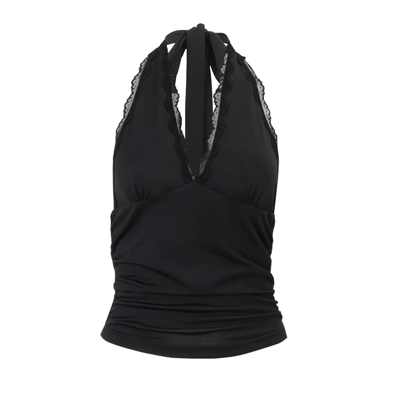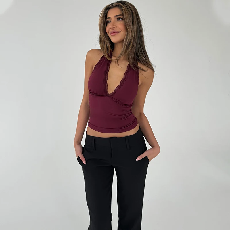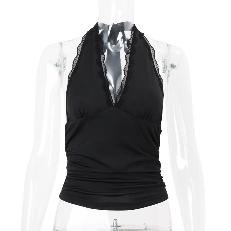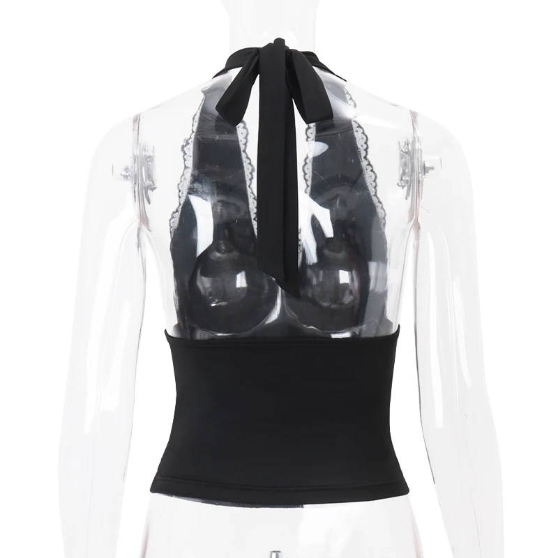 Lunivop V-Neck Sexy Lace Edge Halter Slim Backless Casual Solid Crop Tops Y2K Summer Fashion Streetwear Daily Sweet Cute Vest