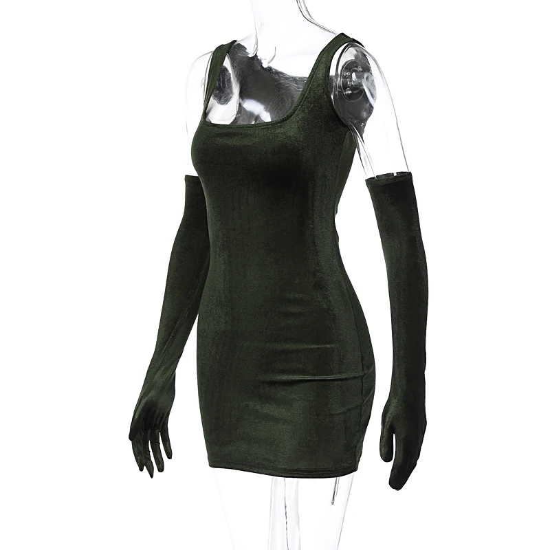 Lunivop Velvet Square Collar Vintage Elegant Women'S Dresses With Gloves Mini Hot Party Club Evening Winter Casual Clothing