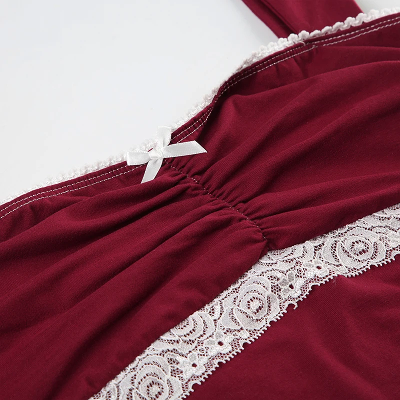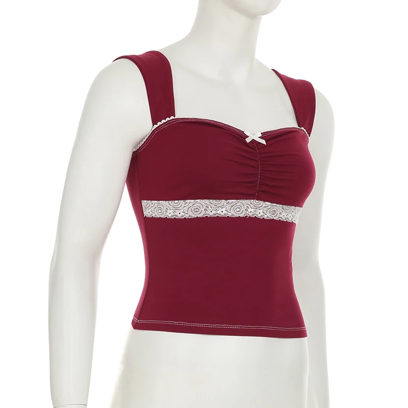 Lunivop Vintage 90s Red Square Collar Crop Top Cute Bow Stitching Sleeveless Skinny T-shirt Women Harajuku y2k Tees Summer Casual
