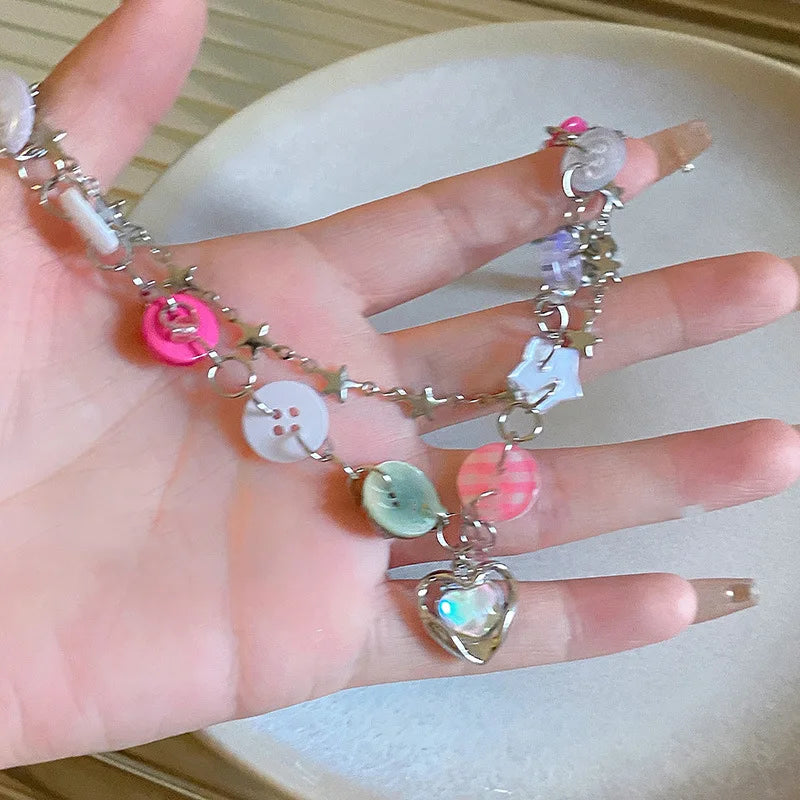 Lunivop Vintage acrylic bead button heart pendant choker necklace for women's gothic party y2k jewelry