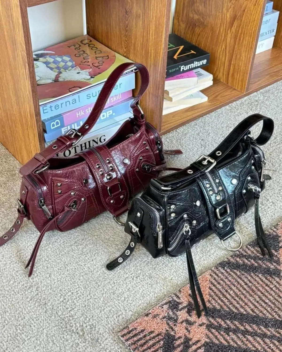 Lunivop Vintage Black Y2k Shoulder Bags Women Sweet Cool Hot Girls Rivet Pu Leather Handbag Ladies Moto Biker Underarm Bag Chic