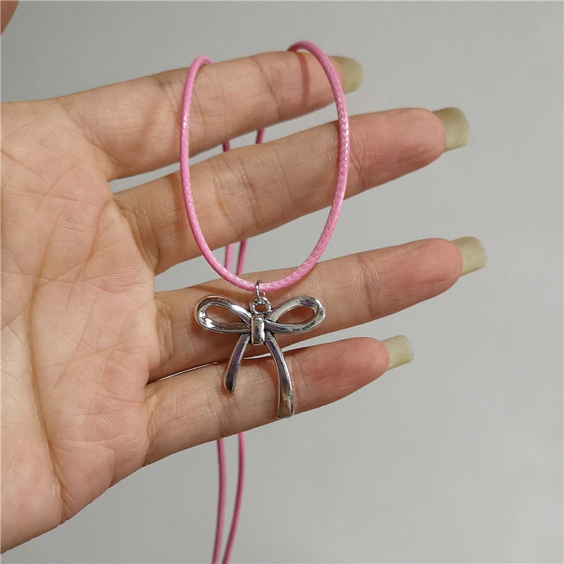 Lunivop Vintage Bowknot Pendant Pink Rope Chain Necklace For Women Gothic Hip Hop Bow Neck Fashion Y2k EMO Aesthetic Jewelry Accessories