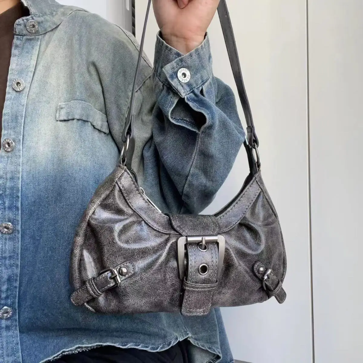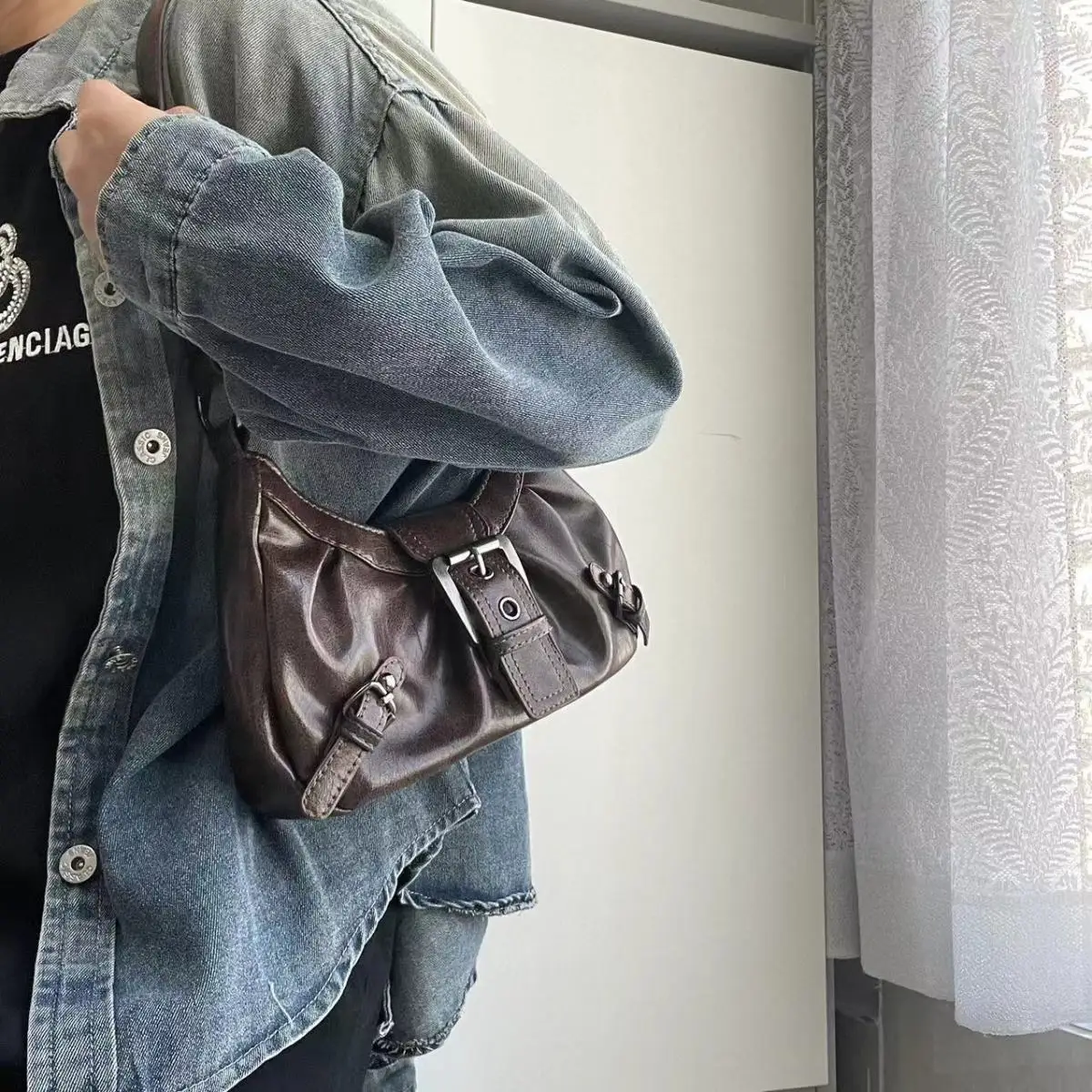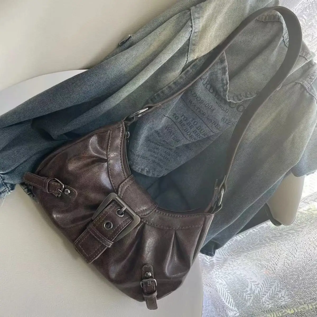 Lunivop Vintage Brown Y2k Underarm Bag Purse Women Retro Pu Leather Soft Shoulder Tote Bag Ladies Moto Biker Casual Handbag New