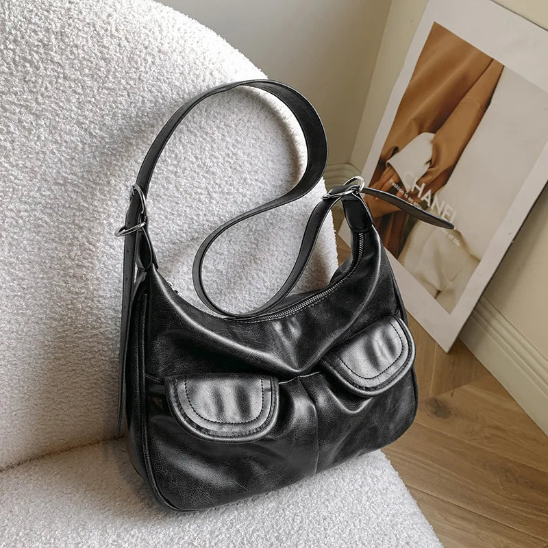 Lunivop Vintage Casual Shoulder Bags Purse Women Retro Pu Leather Pocket Chic Black Messenger Bag Female Moto Biker Y2k Handbag