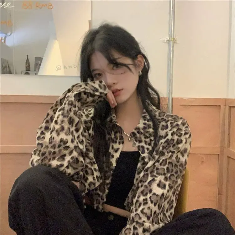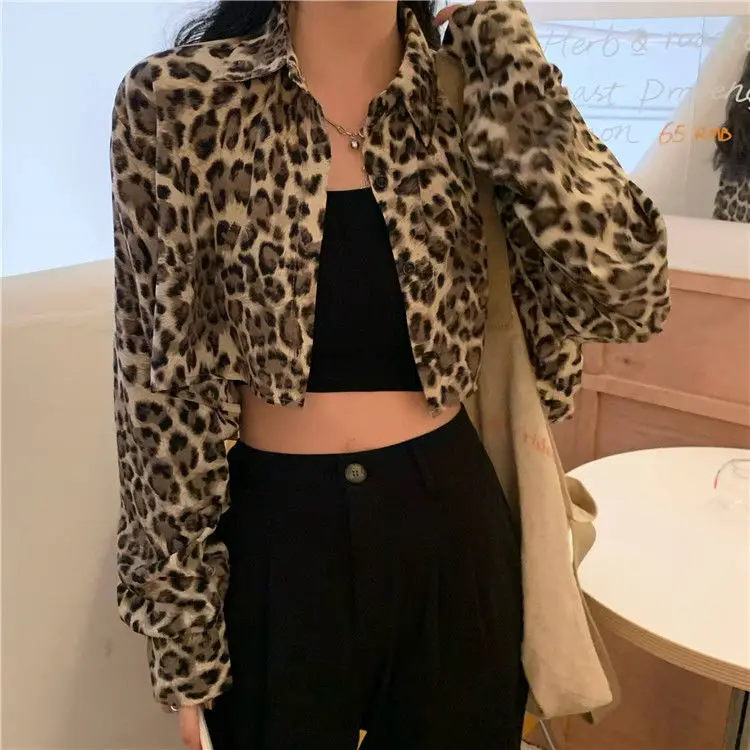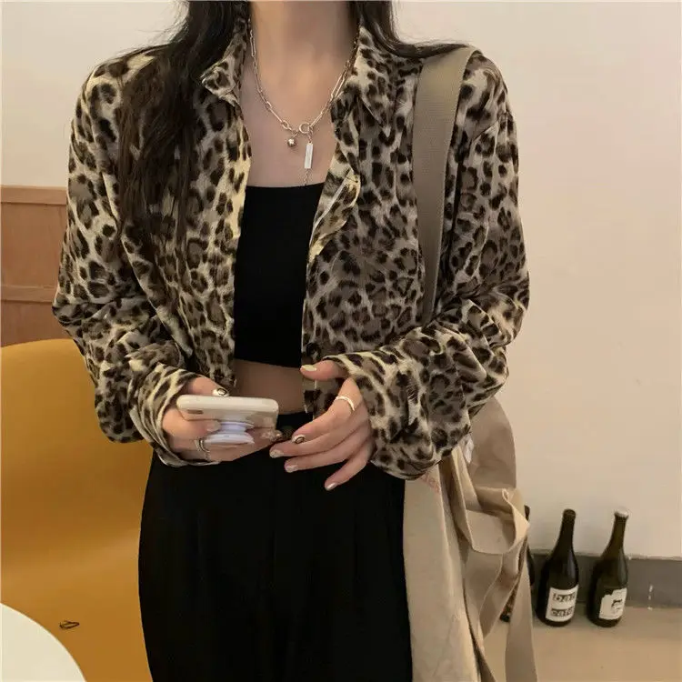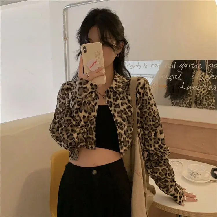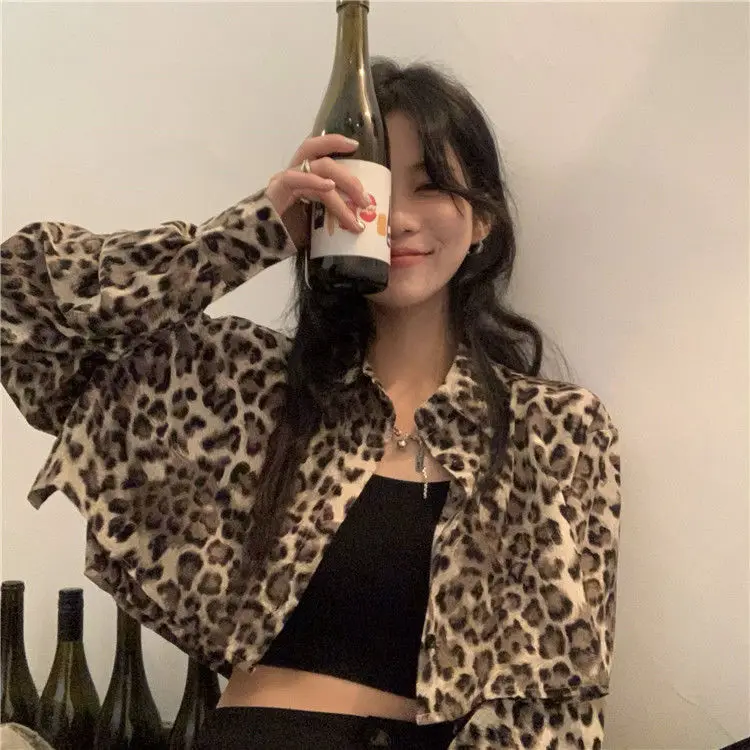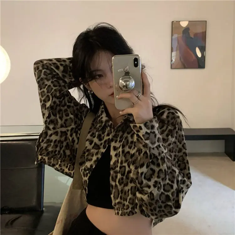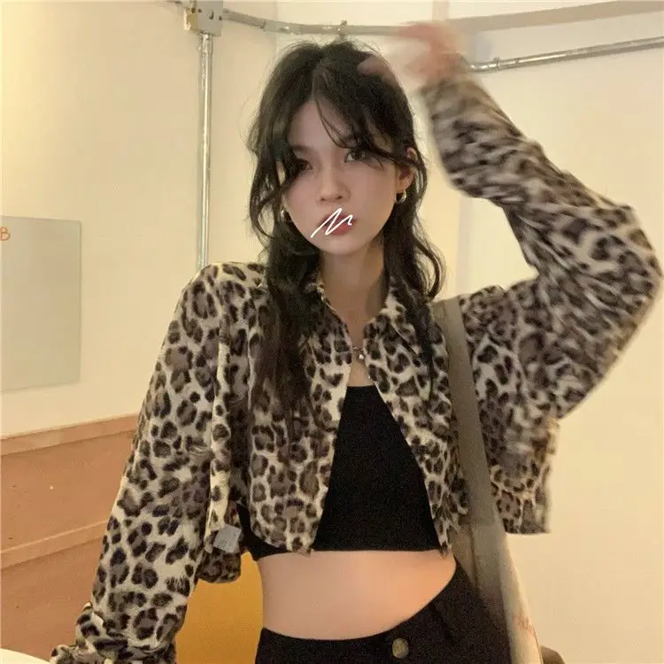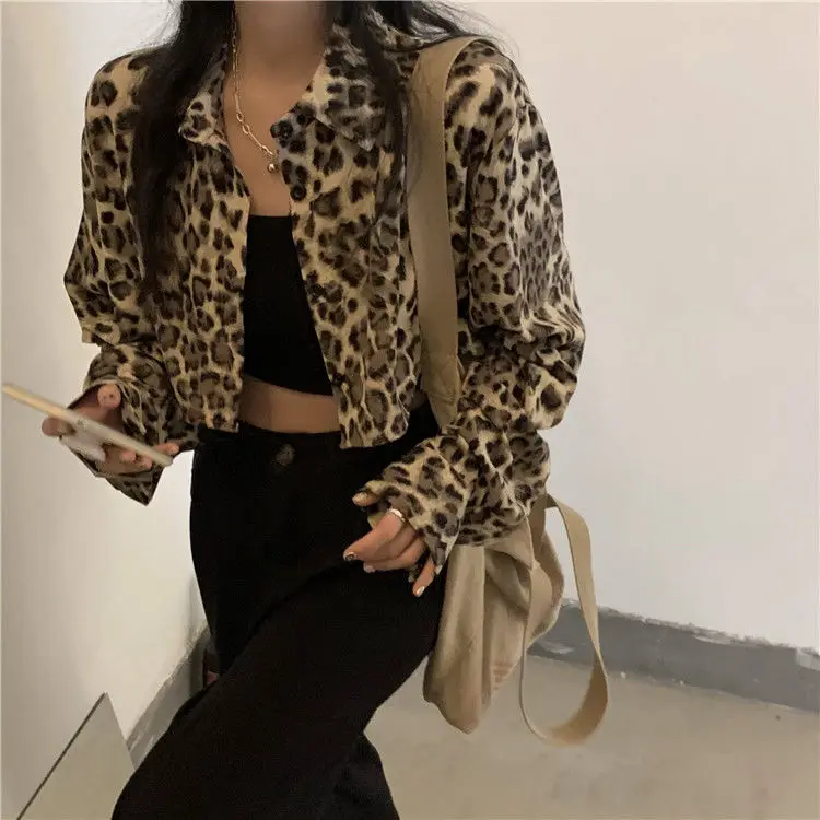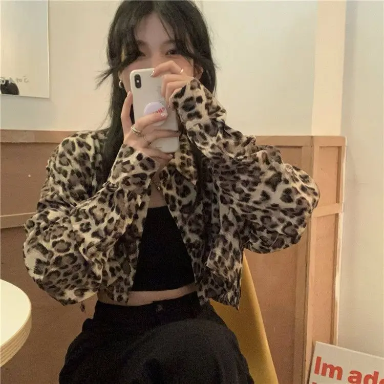 Lunivop Vintage Cropped Leopard Jacket Women Spring Streetwear Y2k Korean Fashion Short Jacket Chic and Elegant Aesthetic Tops