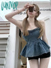 Lunivop Vintage Denim Strapless Vest for Women 2024 Mmer New Slim Waist Ruffles Tank Top Y2k E-Girl Off Shoulder Sleeveless Tops