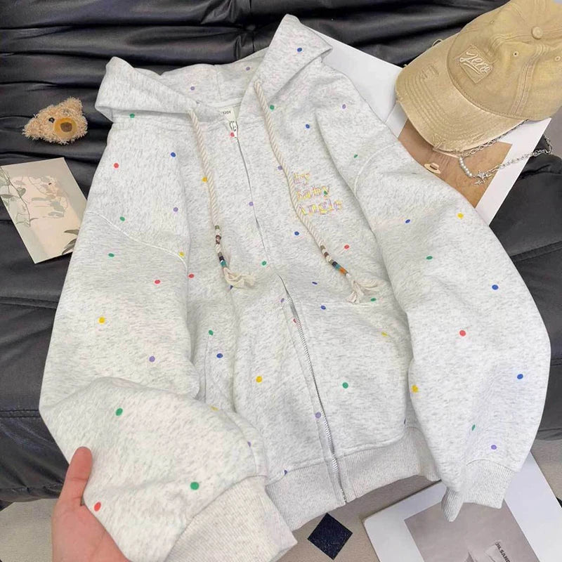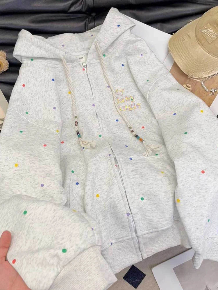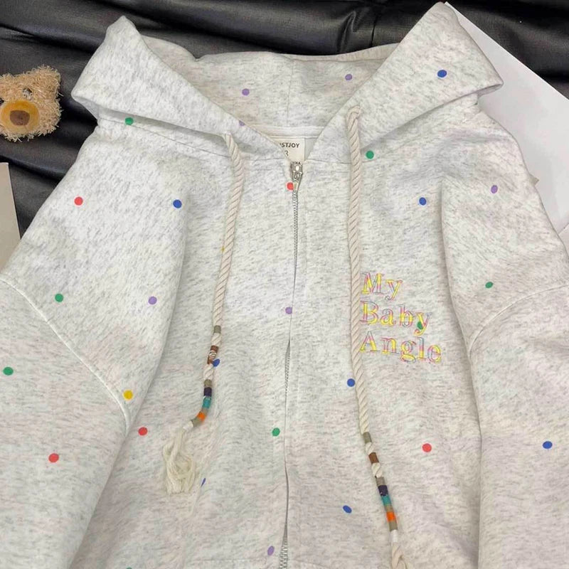 Lunivop Vintage Dot Sweet Hoodies Women Letter Embroidery Cute Loose Sweatshirts Casual Preppy Style Long Sleeve Lady Japan Tops