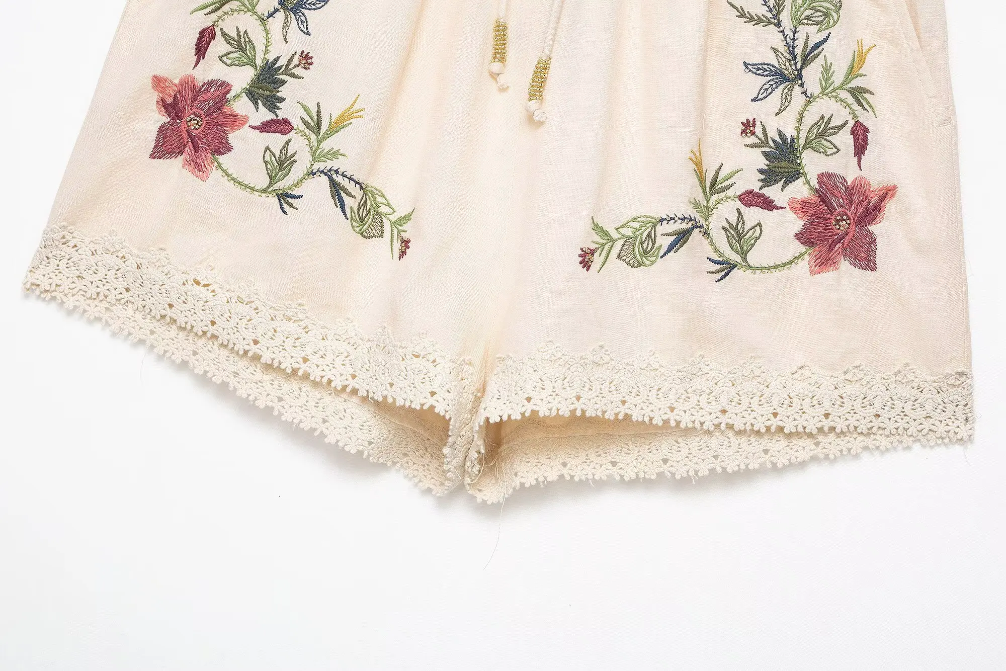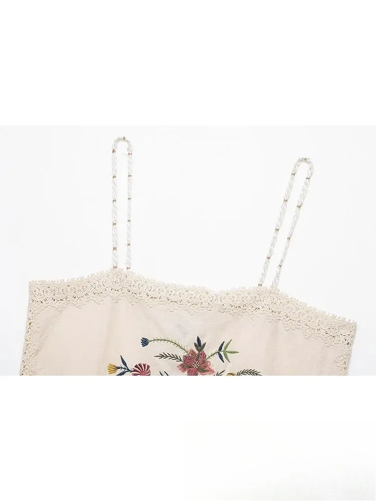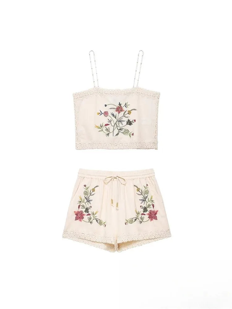 Lunivop Vintage Embroidery Flower Women Sets 2 Pieces Short Cami Tops High Waist Shorts Fashion Summer Holiday Beach Sets
